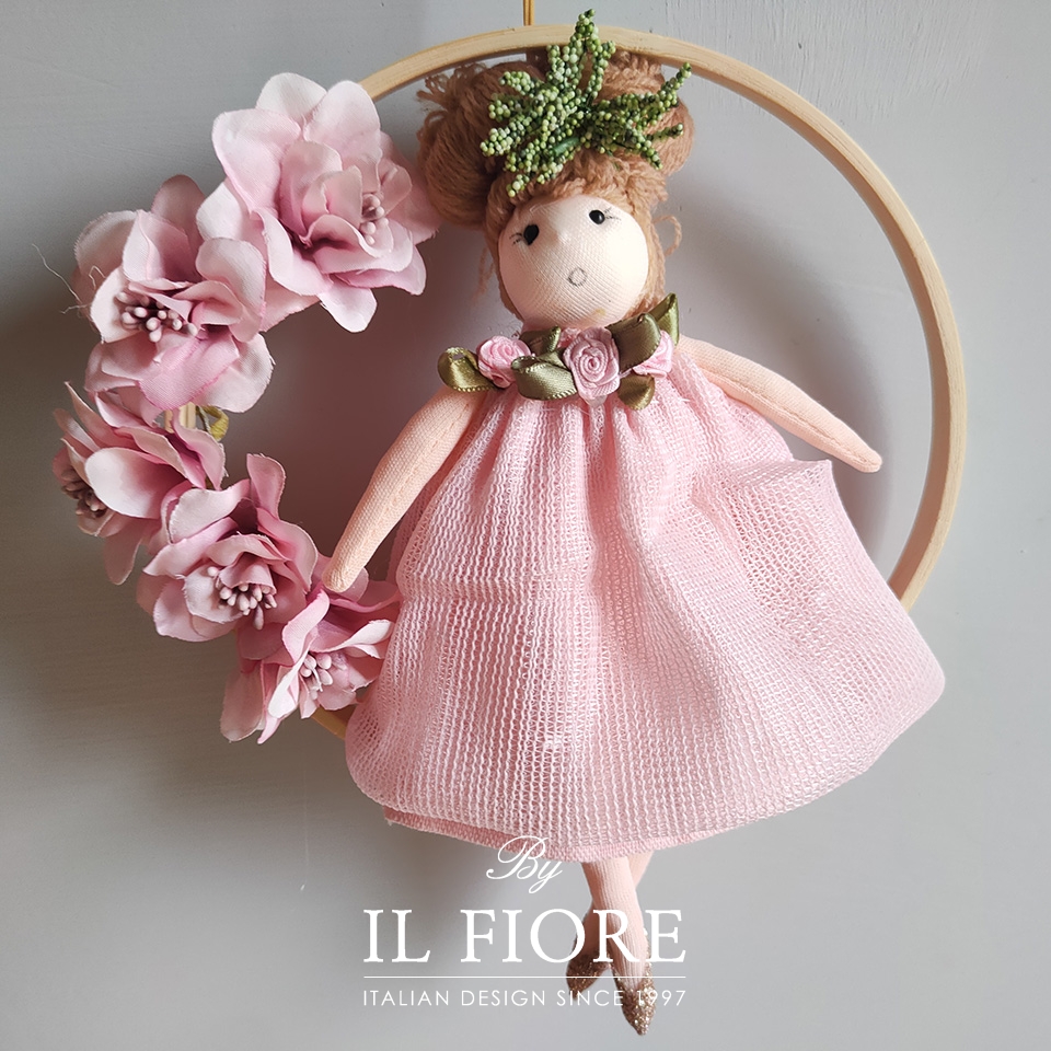 Bomboniere bambola nuvola con cerchio con fiori