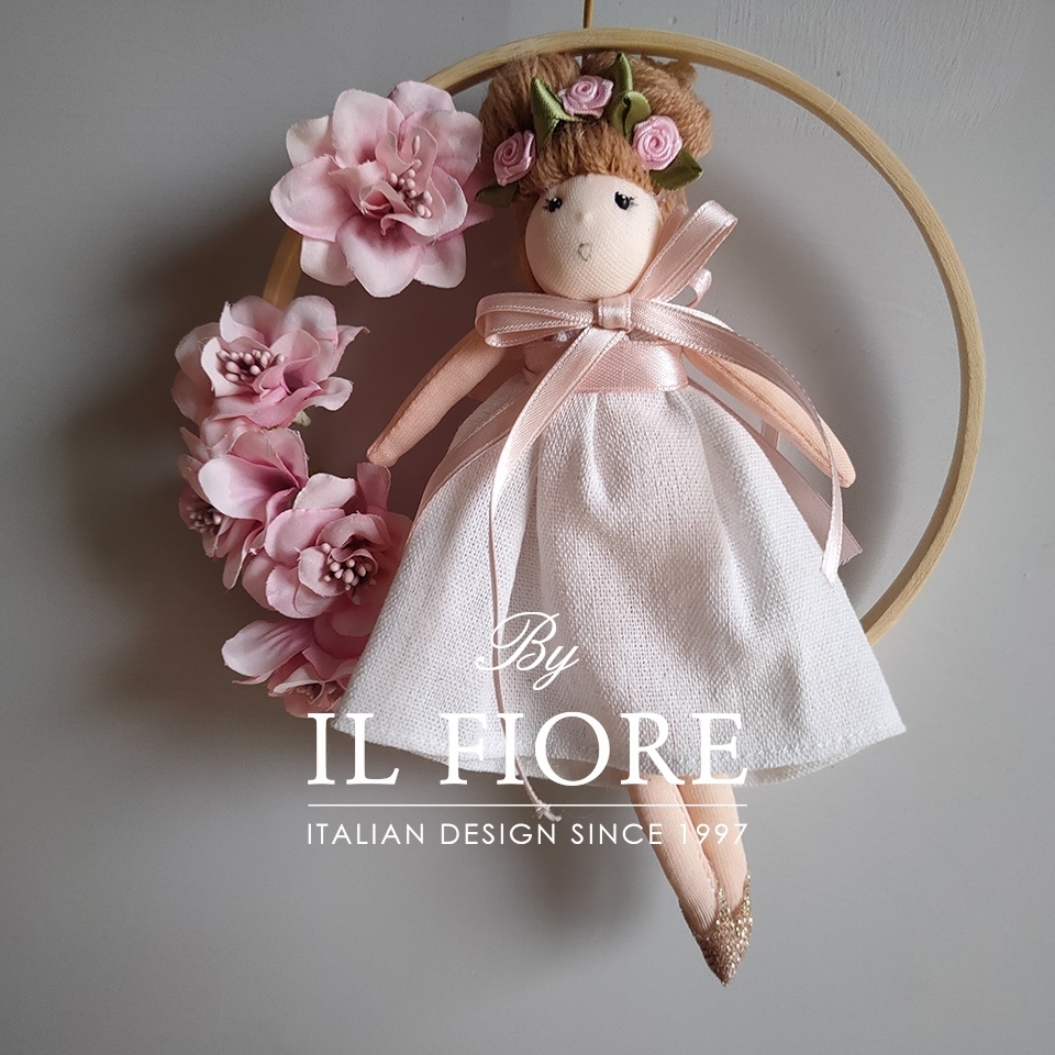 Bomboniere Comunione bambola nuvola con cerchio e fiori
