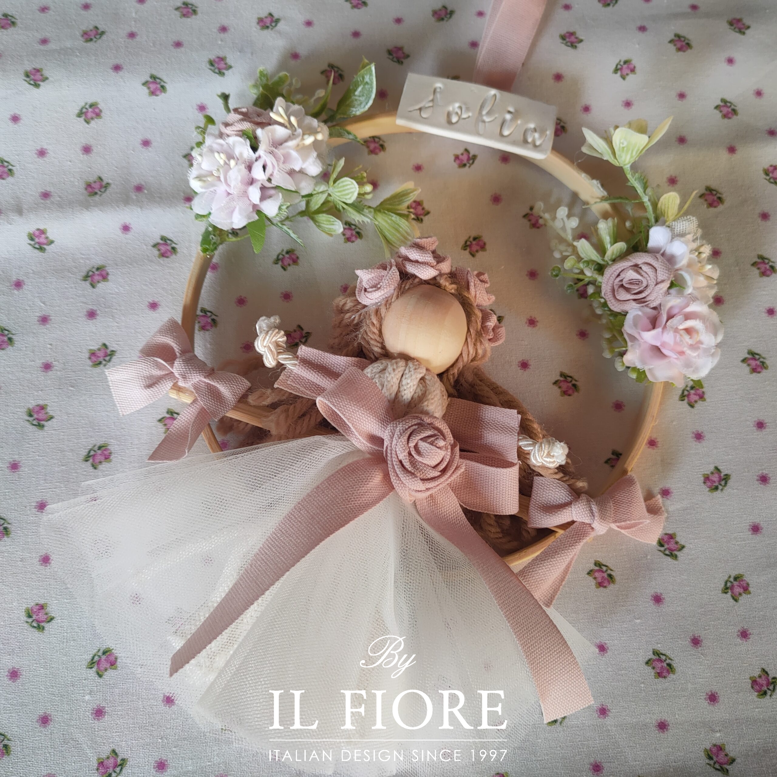 Bomboniere Battesimo bambola cerchio con fiori
