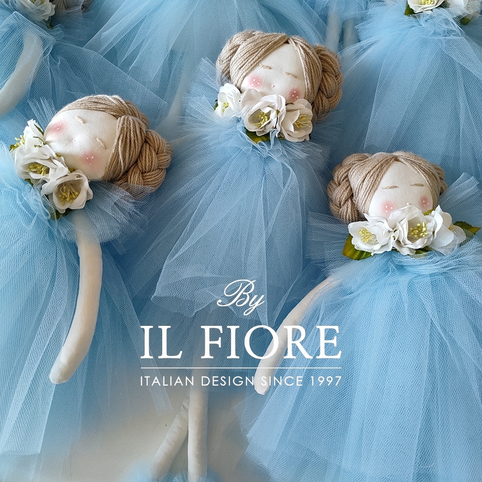Bomboniera Battesimo, bambola in stoffa con vestito in tulle e fiori. Realizzate interamente a mano.