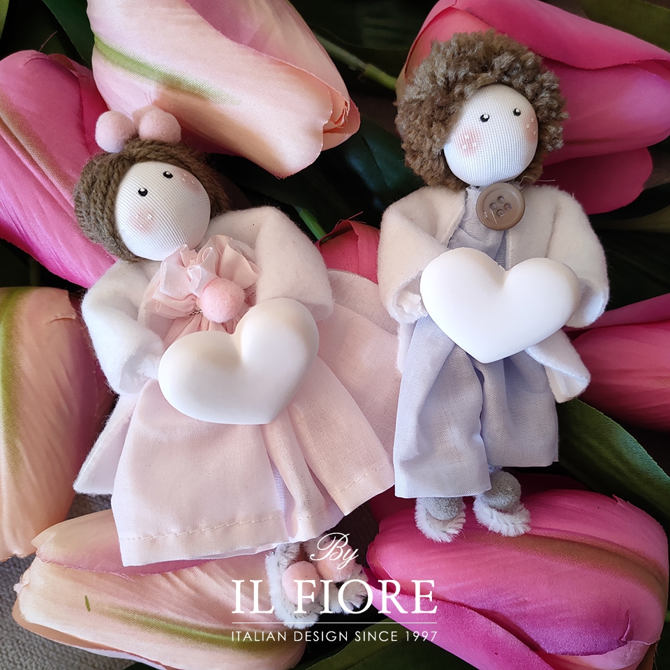 Bomboniere Battesimo bimba bimbo Bambola con cuore personalizzabile con nome