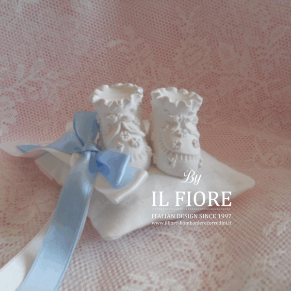 Bomboniere Battesimo bimbo/bimba cuscino Portaconfetti con scarpette.