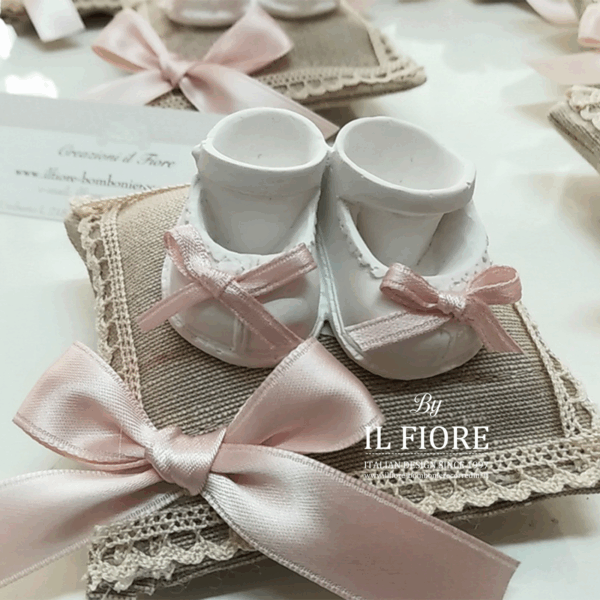 Bomboniere Battesimo bimbo/bimba cuscino Portaconfetti con scarpette.