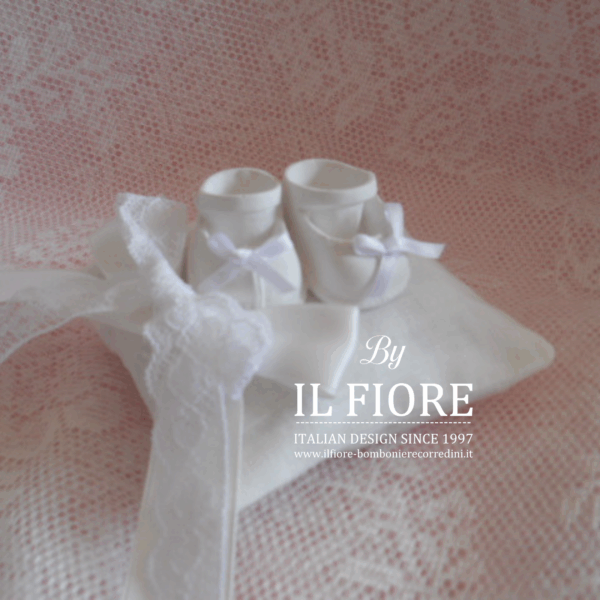 Bomboniere Battesimo bimba cuscino Portaconfetti con scarpette.