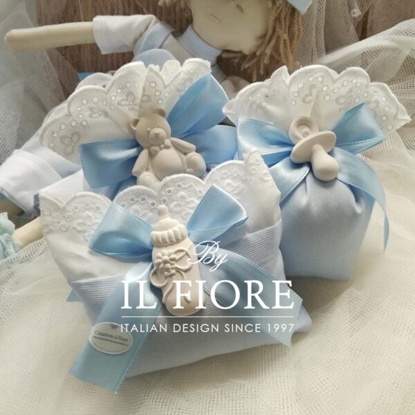 Bomboniere Battesimo bimba e bimbo con Sangallo