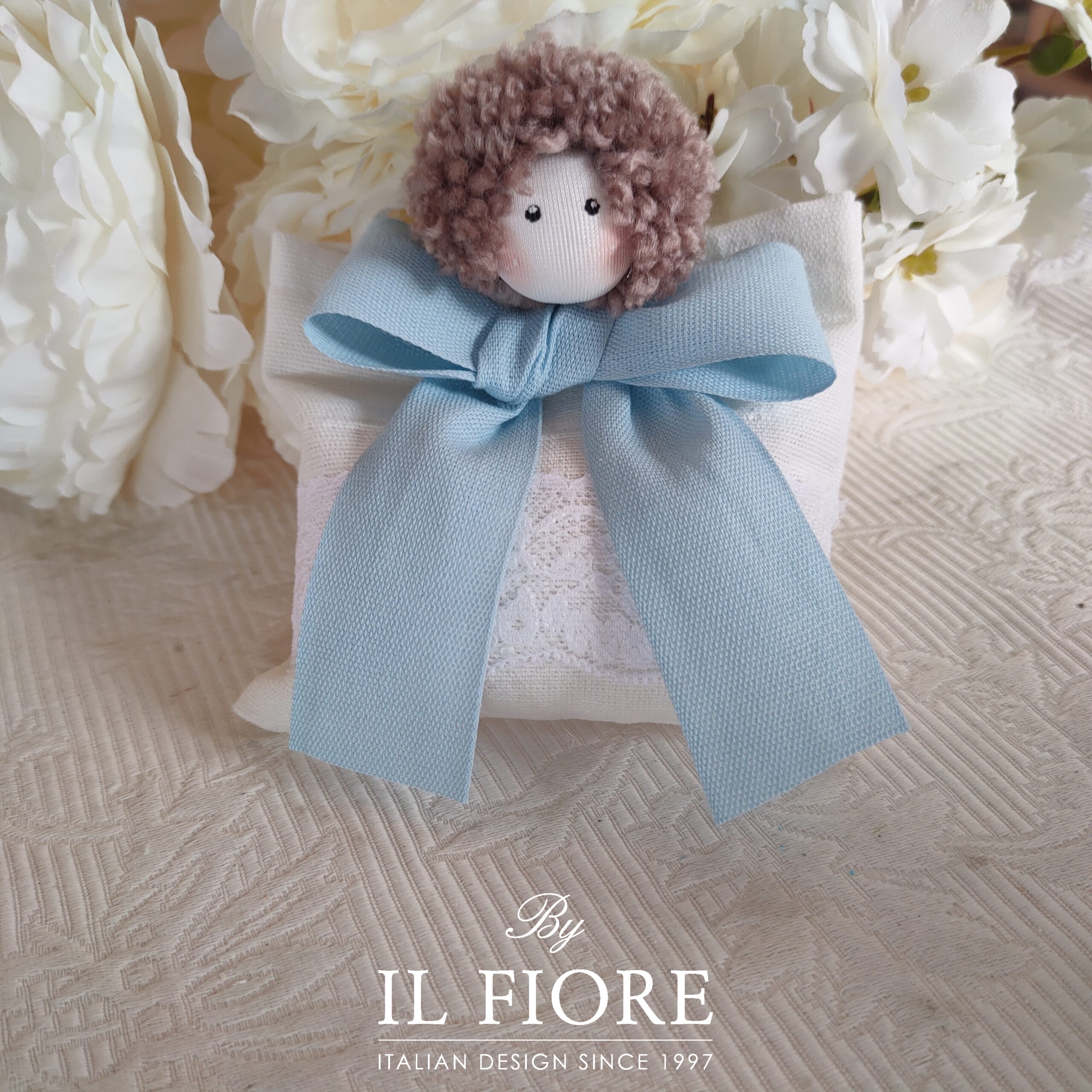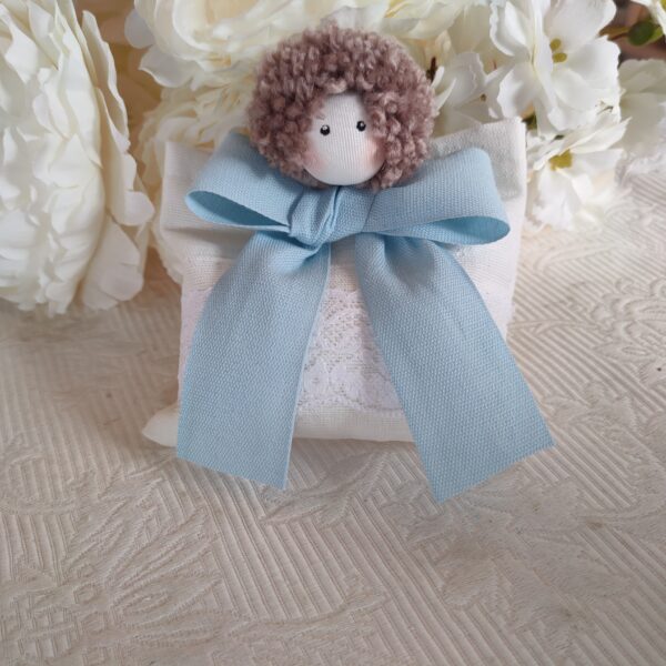 Bomboniere Battesimo bimba e bimbo sacchetto con testolina bambola