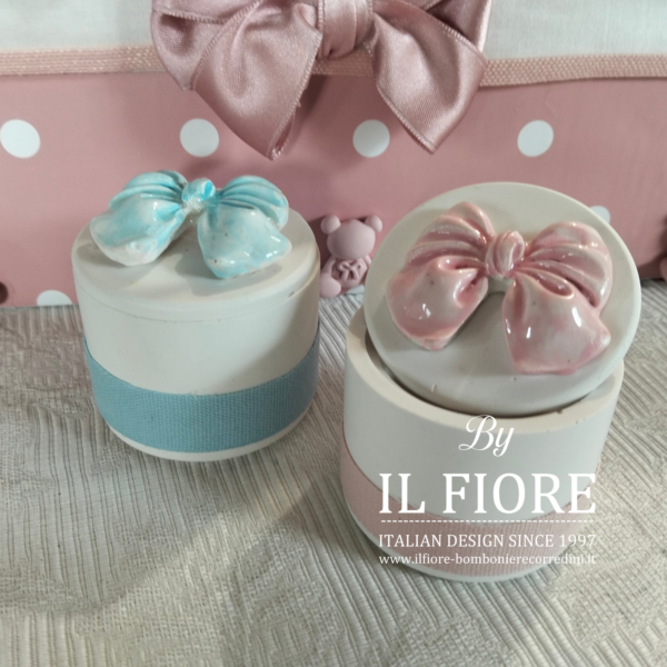 Bomboniere Battesimo bimba/o scatola con in gesso con fiocco