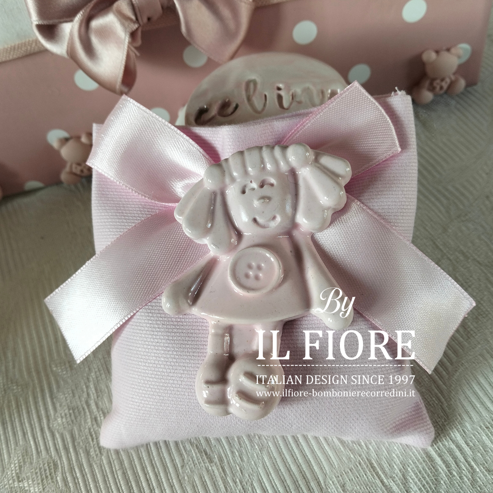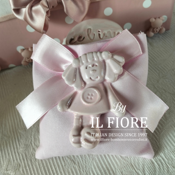 Bomboniere Battesimo bimba sacchetto con bambolina