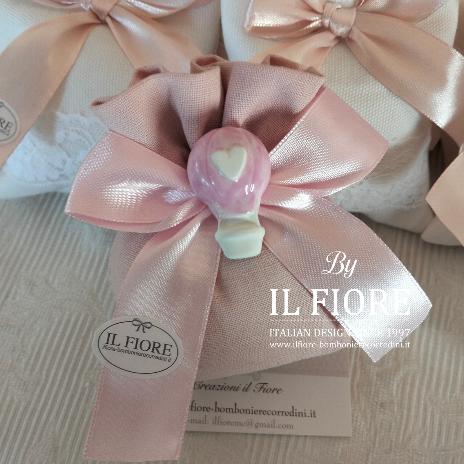 Bomboniere Battesimo bimba sacchetto con carrozzina ciuccio mongolfiera