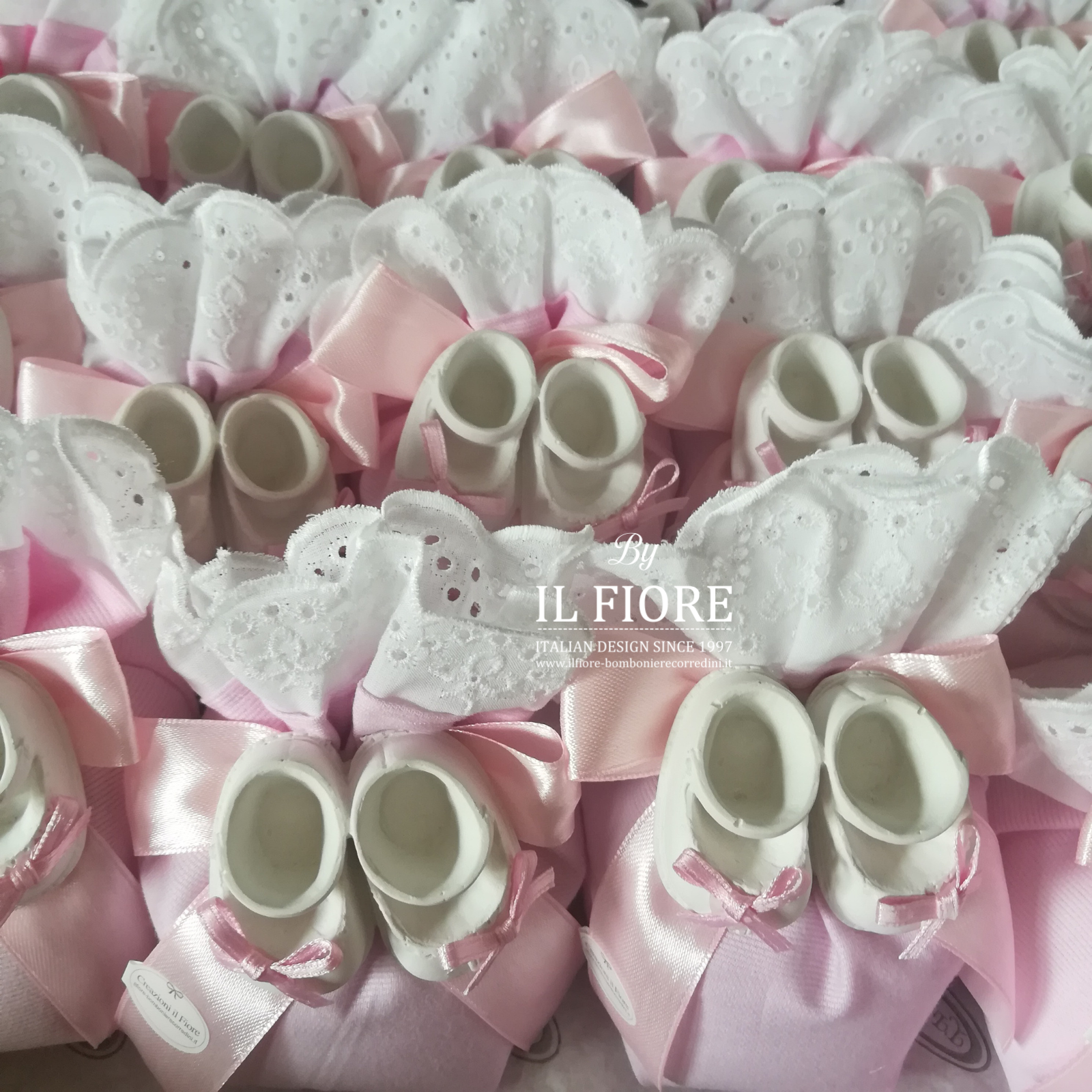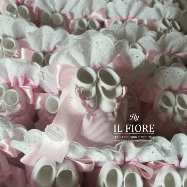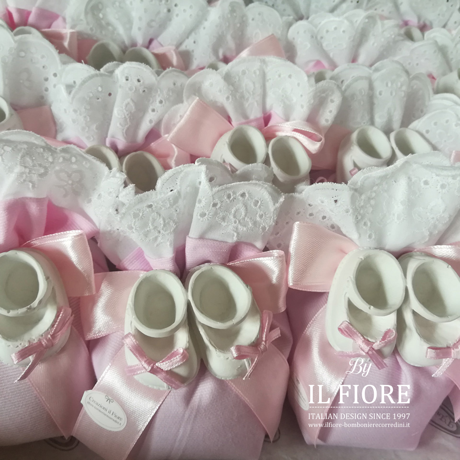 Bomboniere Battesimo bimba Sacchetto con San Gallo e scarpette.
