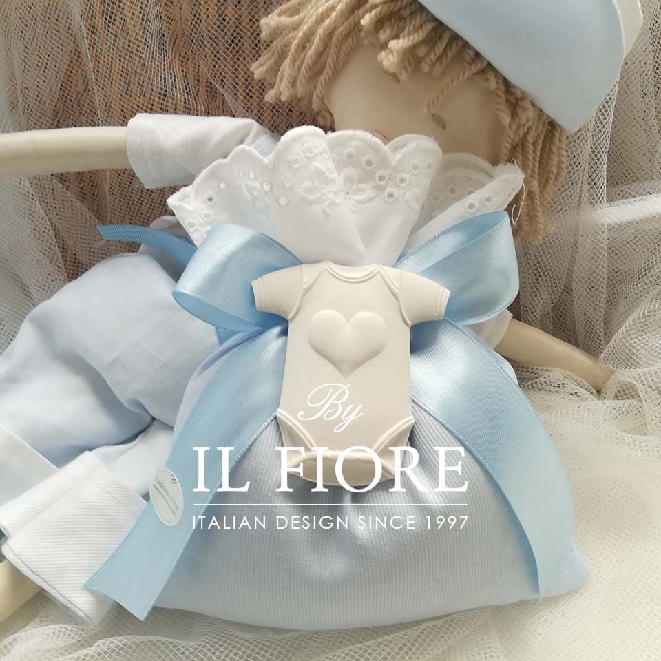 Bomboniere Battesimo bimbo e bimba con Sangallo