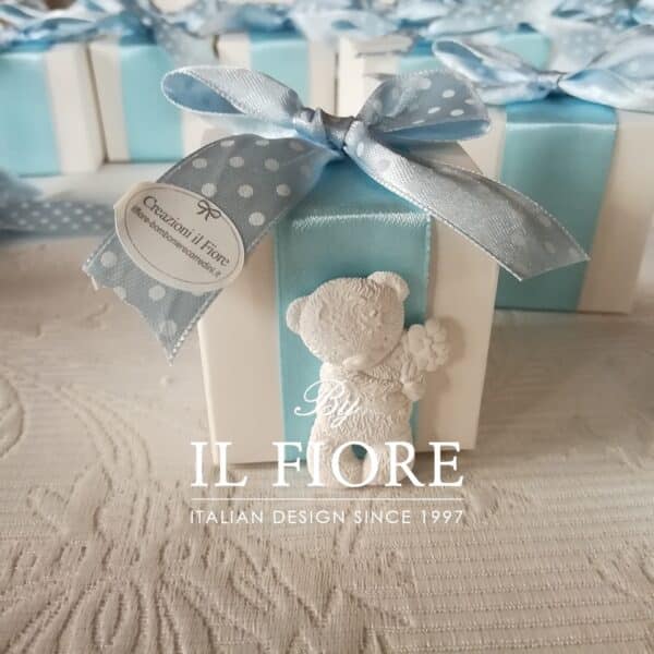 Bomboniere Battesimo bimbo e bimba Scatola Portaconfetti con orso profumato