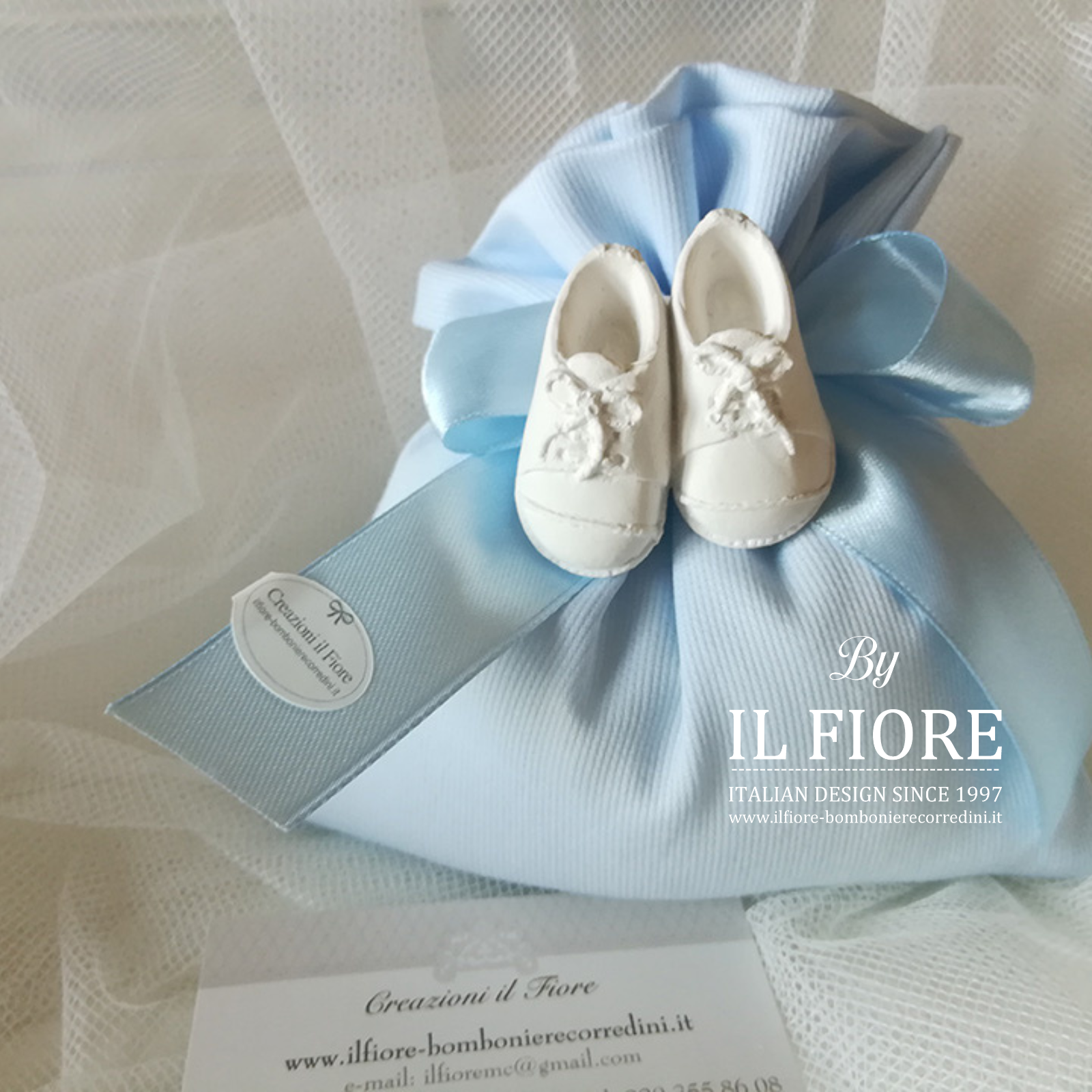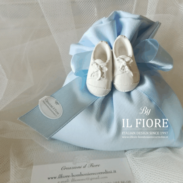 Bomboniere Battesimo bimbo Sacchetto Portaconfetti con scarpette