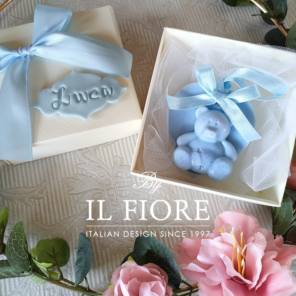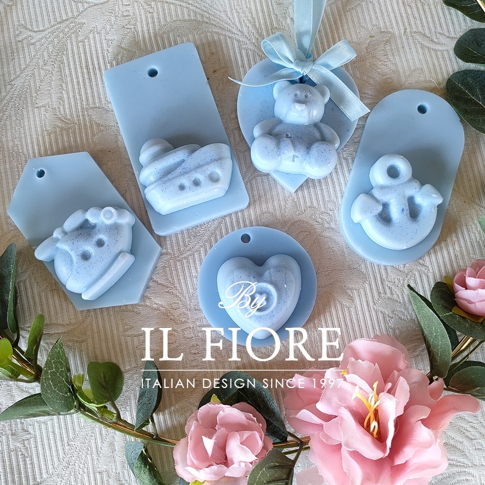 Bomboniera candele decorative profumate da appendere con orsetto, cuore, ancora, elicottero e barchetta.