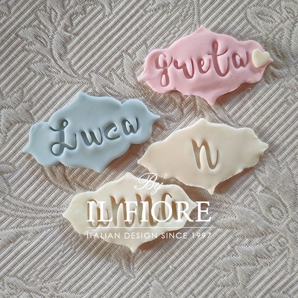 N.B. Nella targhetta si possono mettere nomi con massimo 5 lettere, altrimenti sarà decorata con lettera del nome come nella foto dimostrativa.