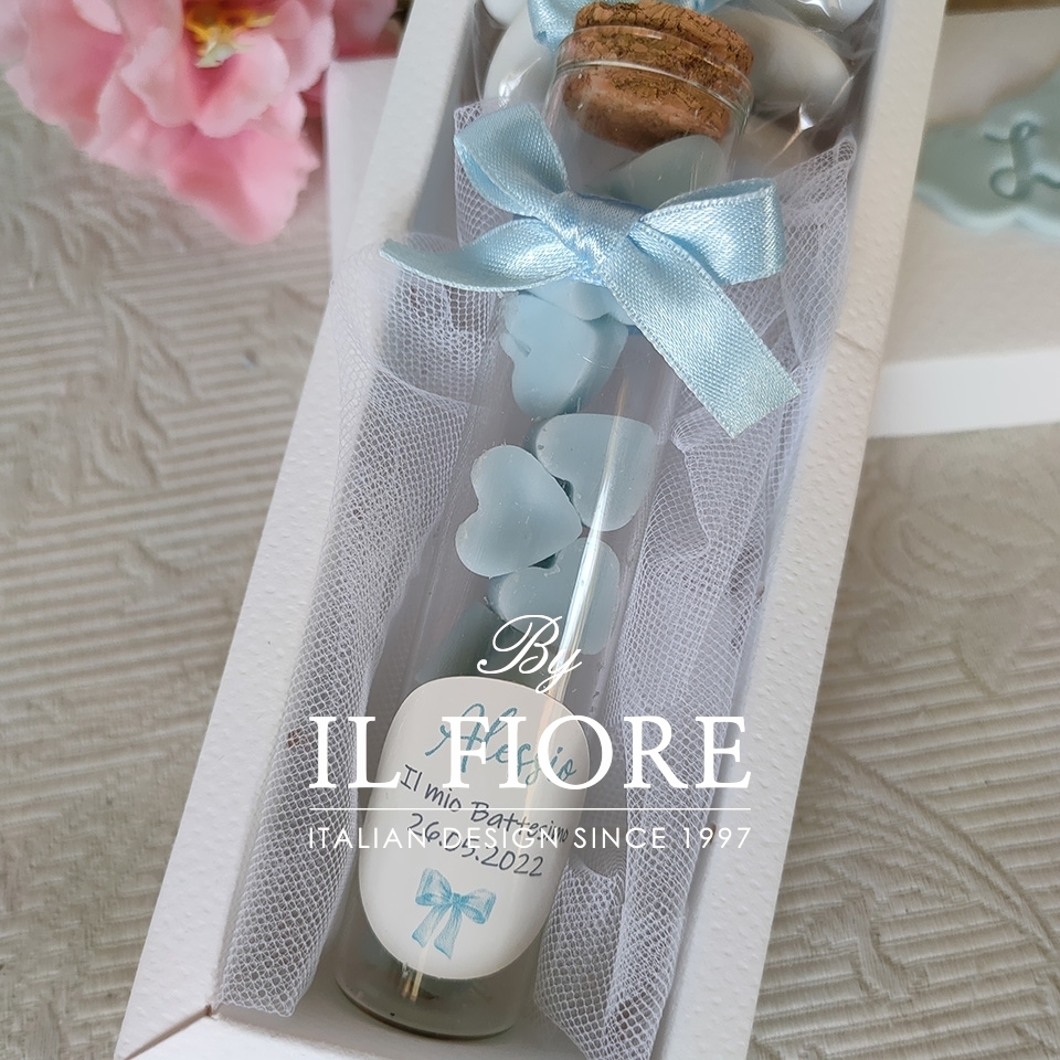 Bomboniere Battesimo candele cuoricini in provetta