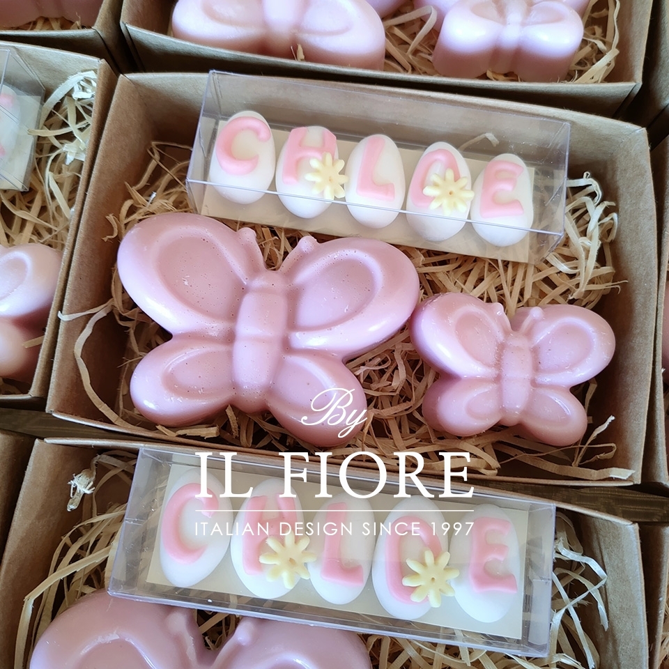 Bomboniera candele decorative farfalle per Battesimo bimba e bimbo.