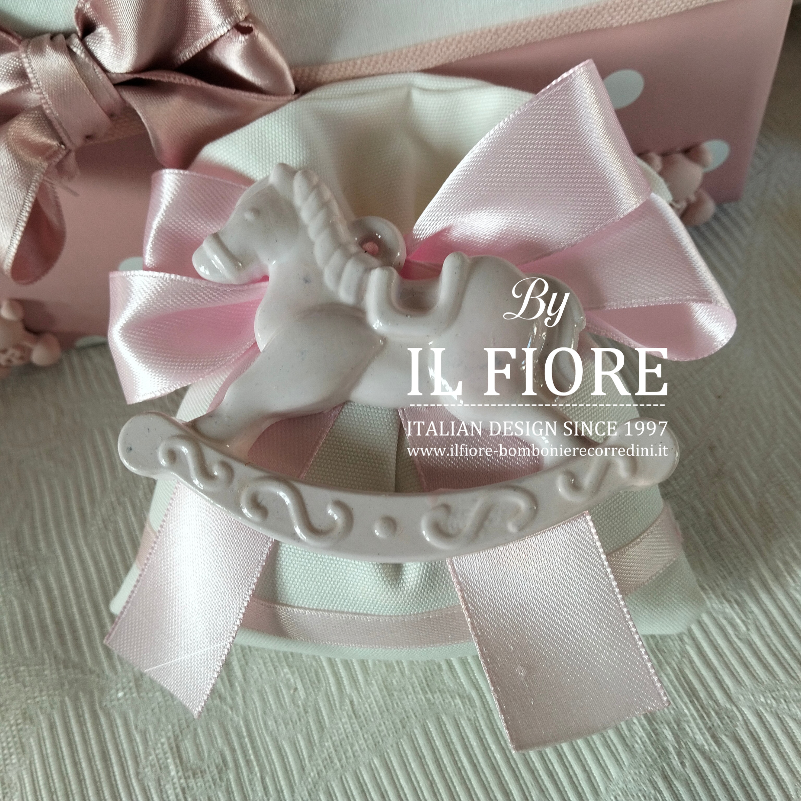 Bomboniere Battesimo cavallo a dondolo con sacchetto portaconfetti