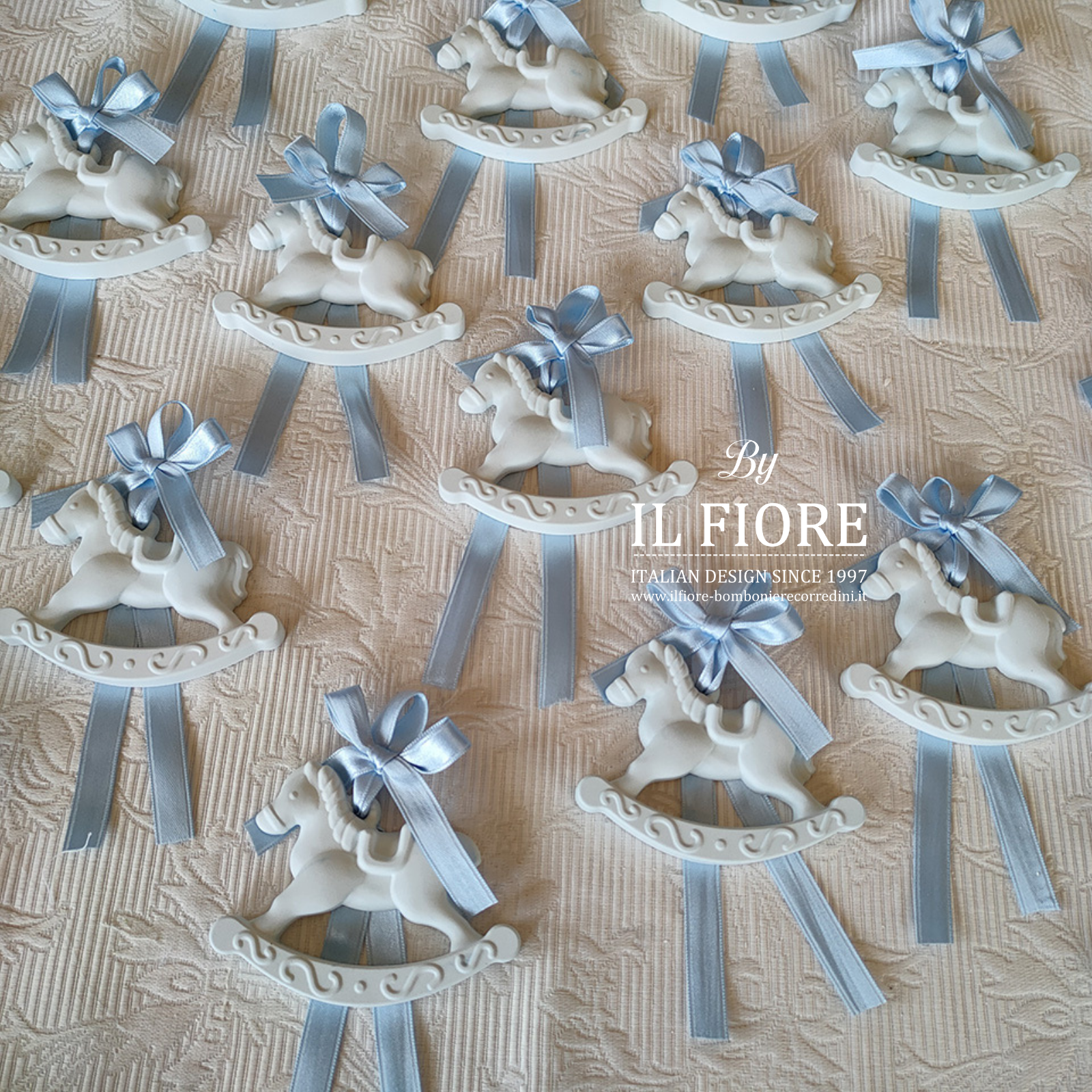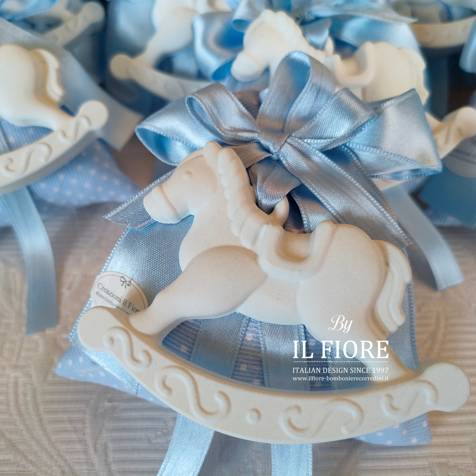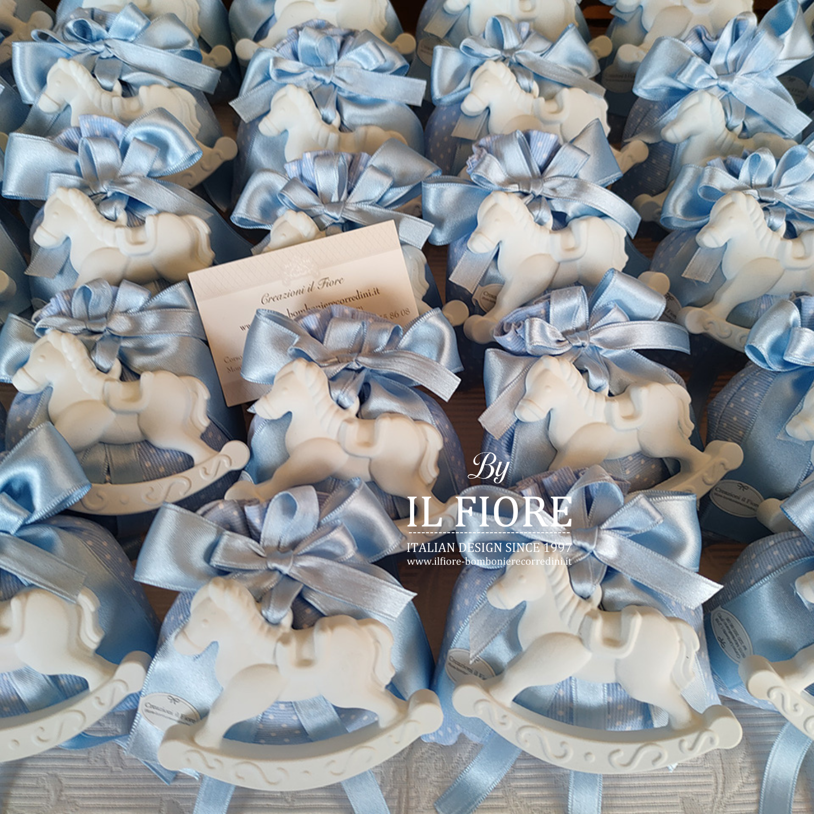 Bomboniere Battesimo cavallo a dondolo con sacchetto portaconfetti