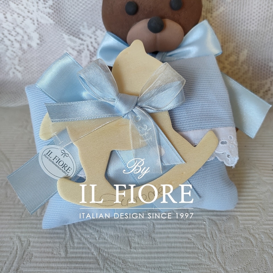Bomboniere Battesimo cavallo a dondolo con sacchetto portaconfetti bimba e bimbo