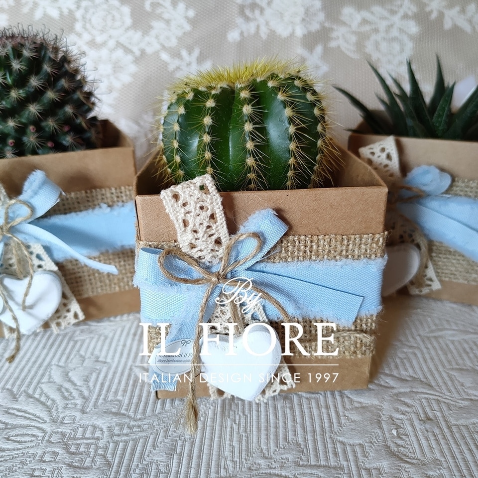 Bomboniera Battesimo bimba e bimbo con piantine grasse VERE e miste.