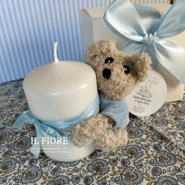 Bomboniere Battesimo orsetto con candela bimbo e bimba