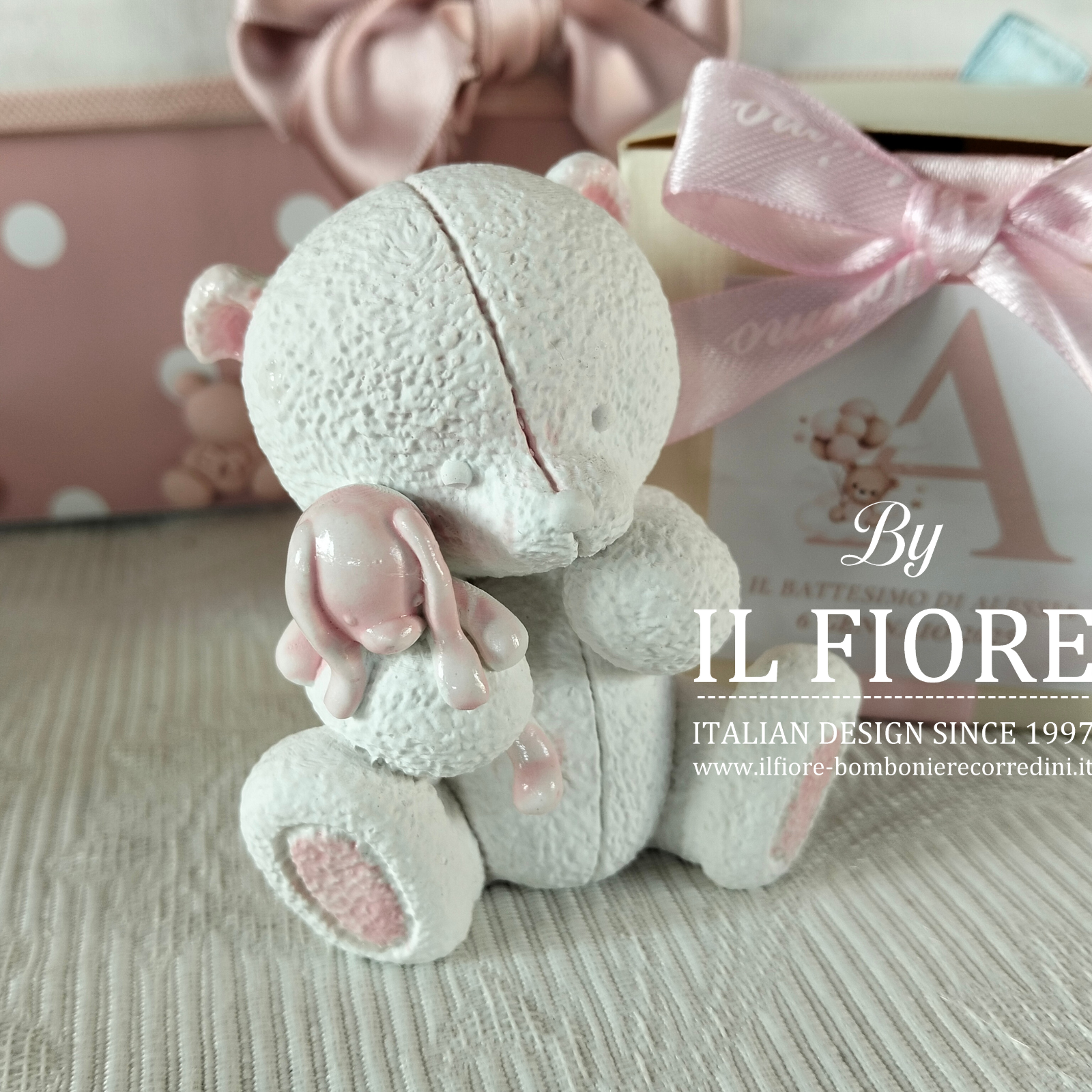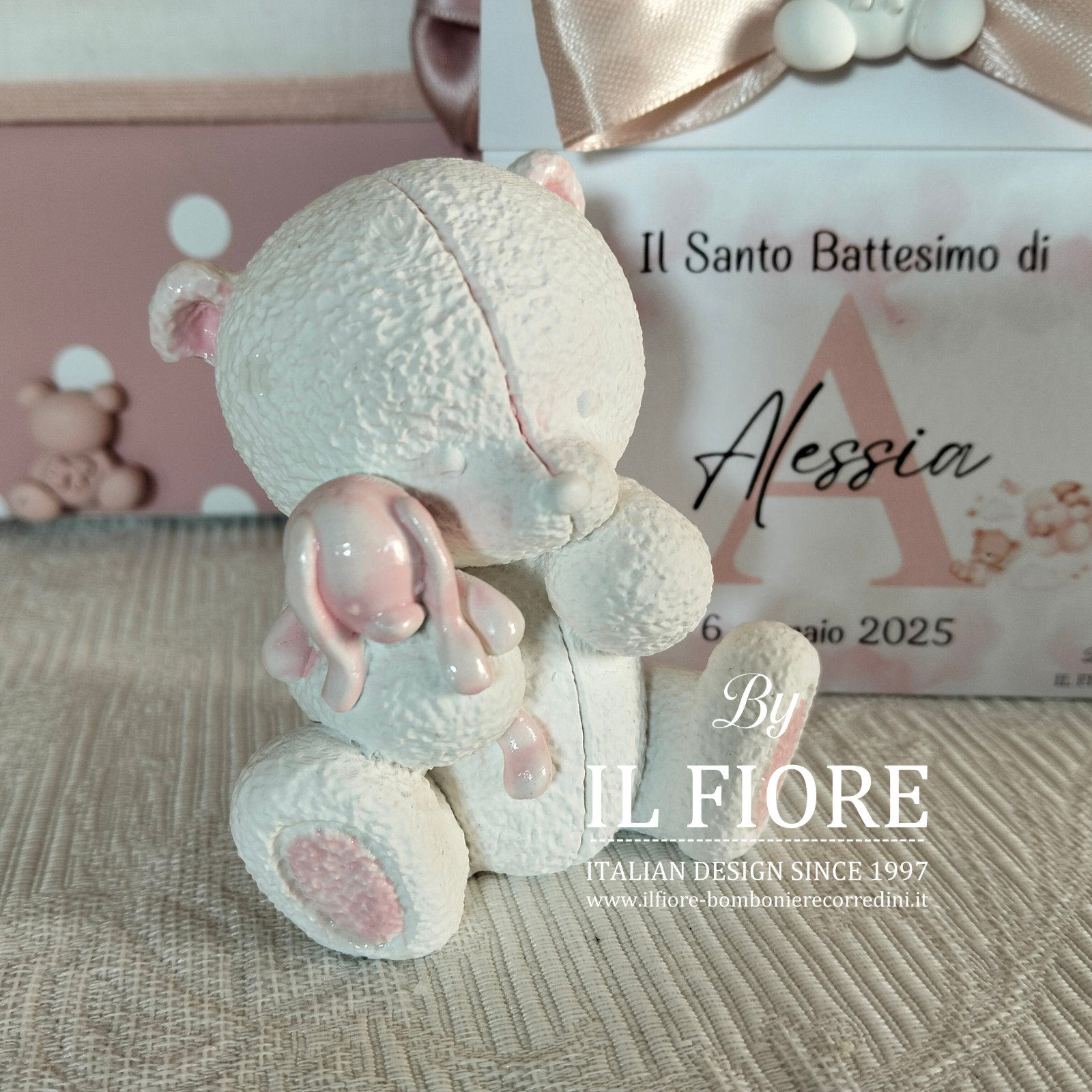 Bomboniere Battesimo orsetto con coniglietto per bimba e bimbo
