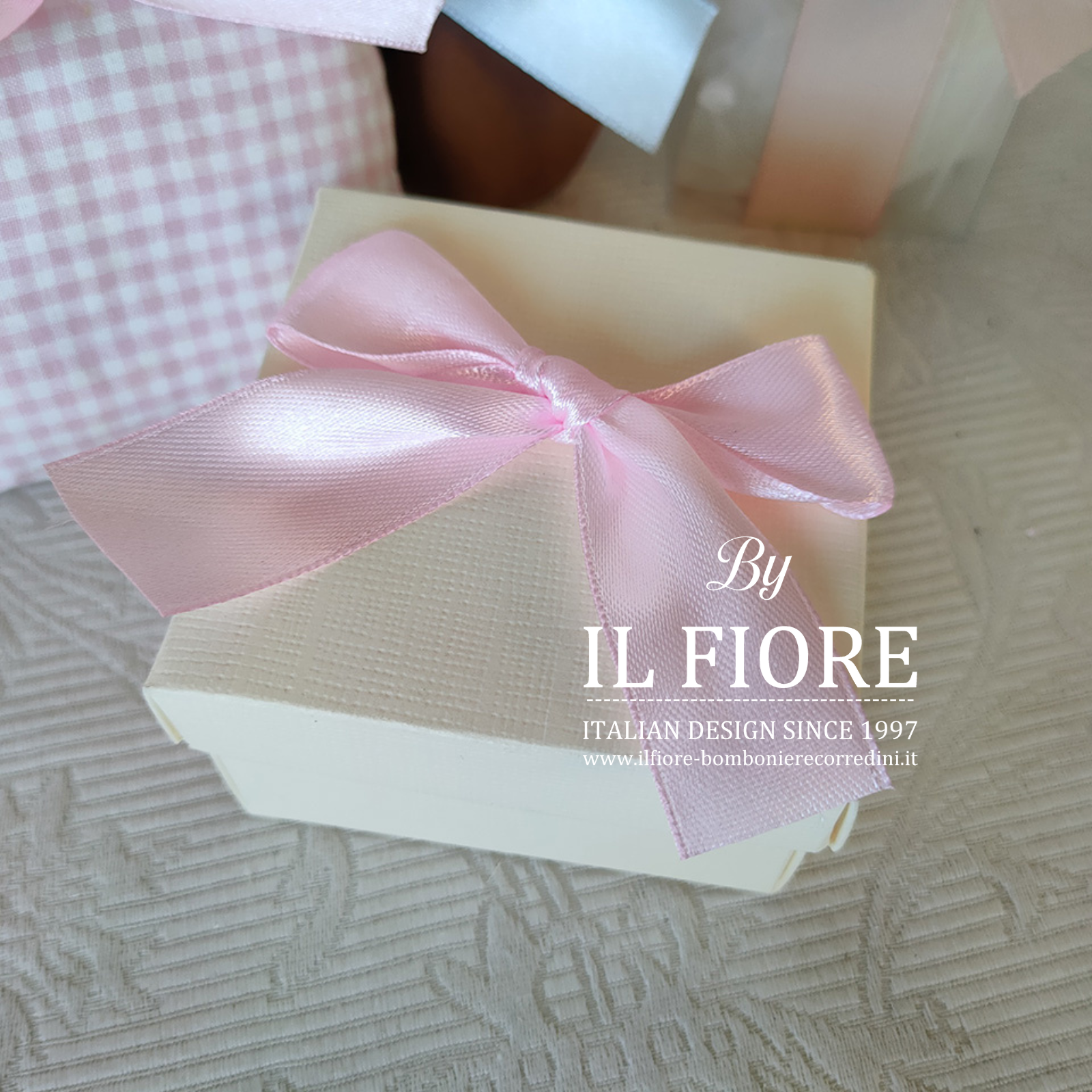 Confezionata con scatola e nastro di raso.