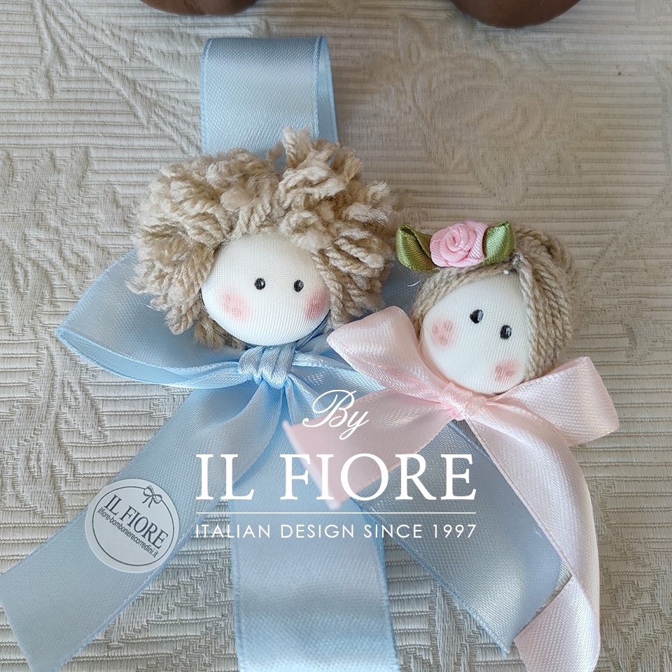 La bomboniera è disponibile in rosa e celeste.
