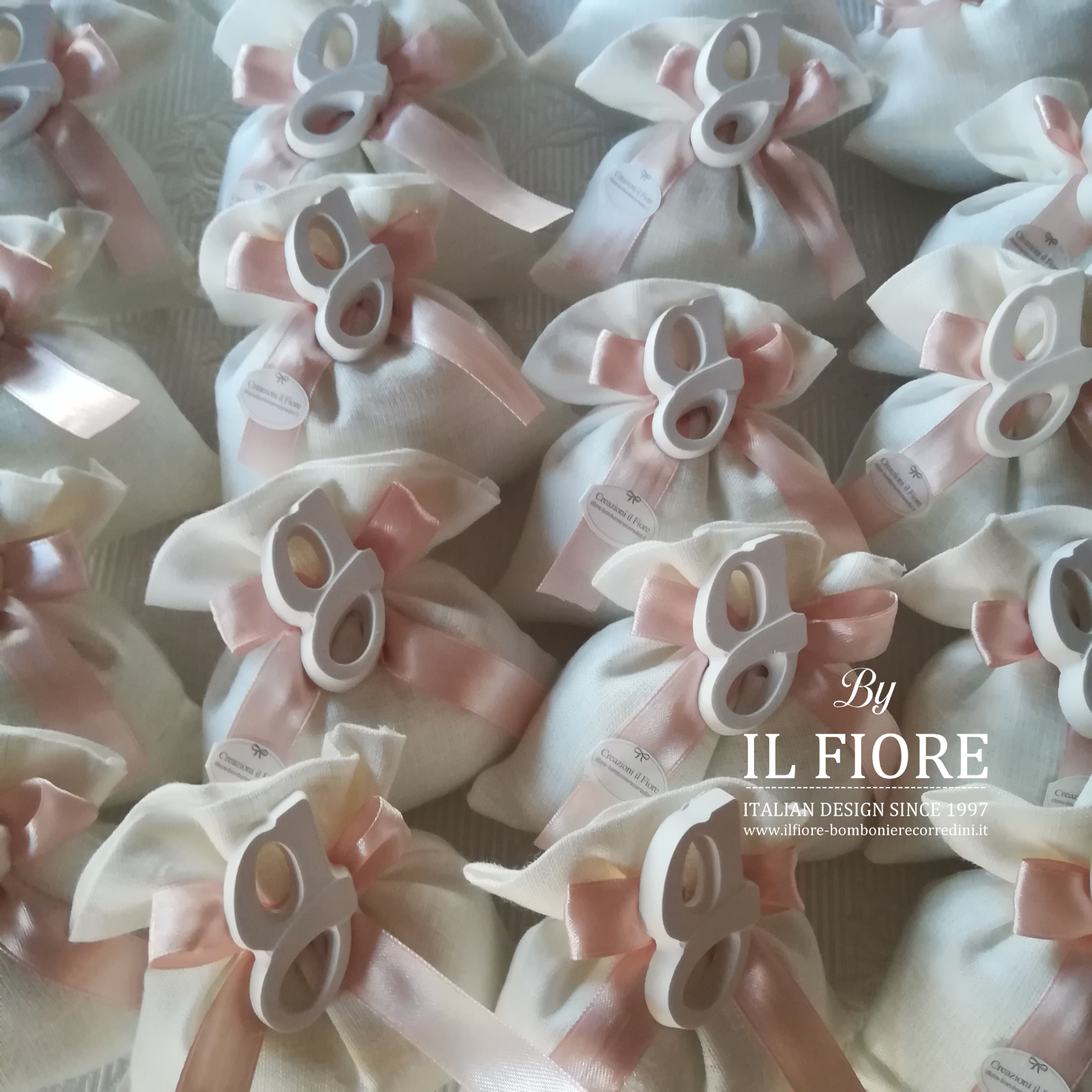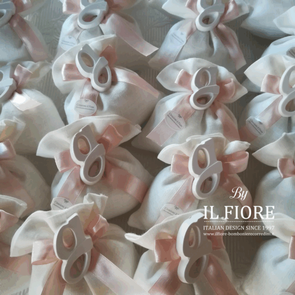 Bomboniere Battesimo, questa bomboniera unisce la tradizione del sacchetto portaconfetti con un tocco personale, rendendola un ricordo unico.