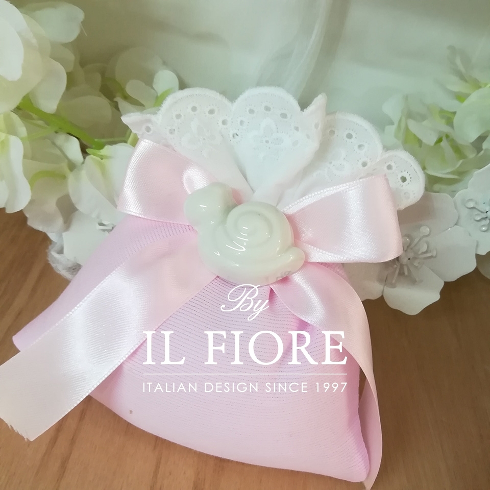 Bomboniere Battesimo Sacchetto Portaconfetti con lumachina in gesso e calamita.