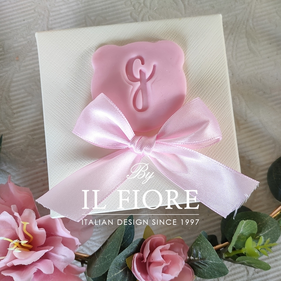 Bomboniera Battesimo saponetta per bimba e bimbo con fiori.