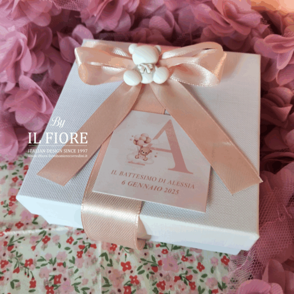 Bomboniere Battesimo scatola portaconfetti portagioie con orsetto e tag