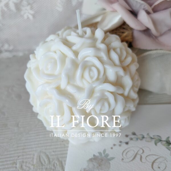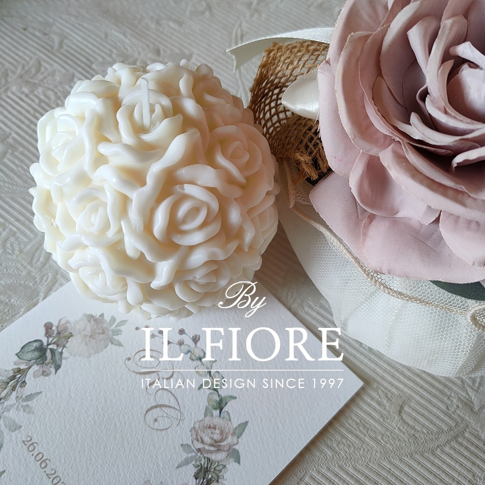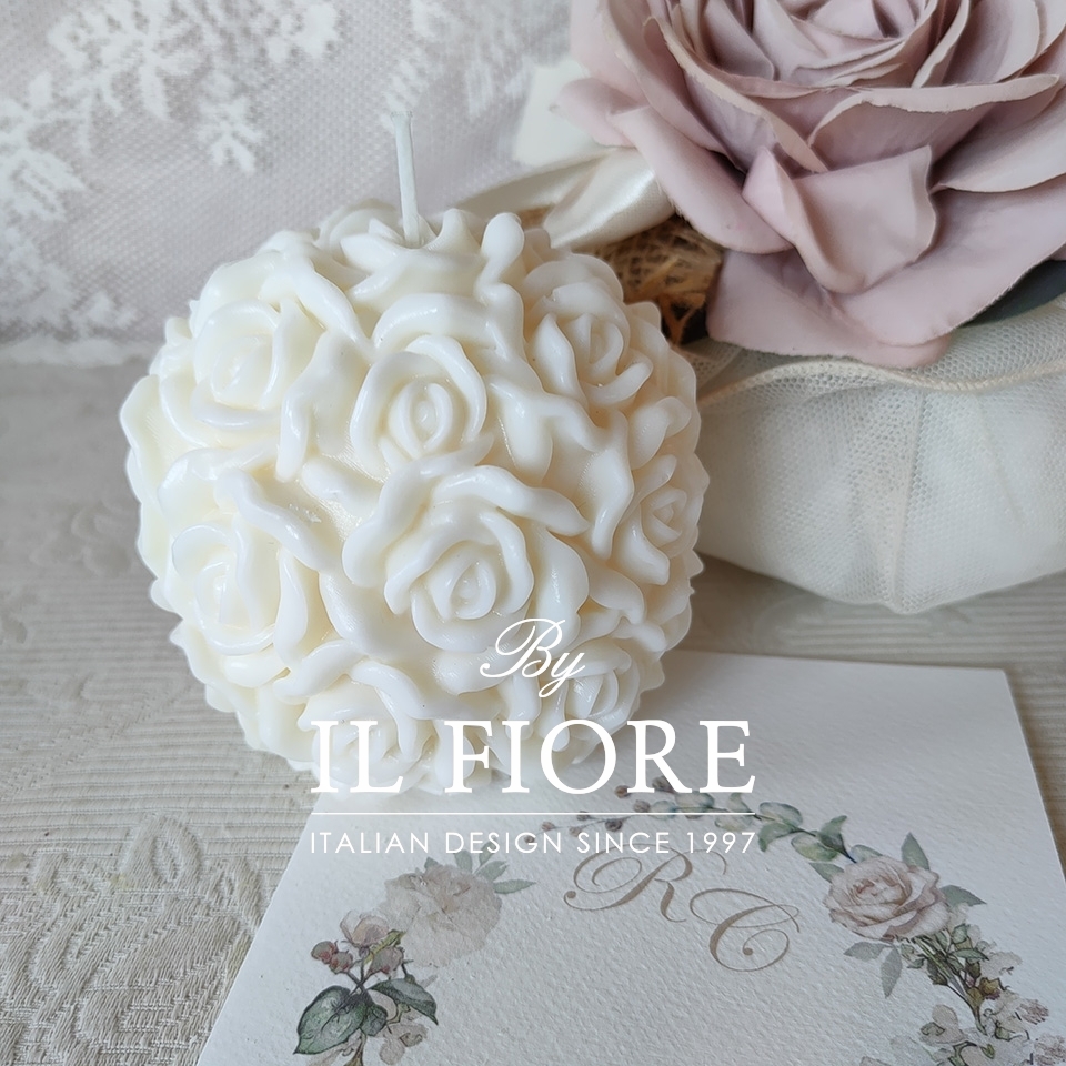 Bomboniera candela grande con Roselline. Disponibile nei colori: bianco, rosa e tortora. Confezionata con scatola, ciuffetto con confetti, nastro e biglietto in omaggio. Creazioni fatte a mano.