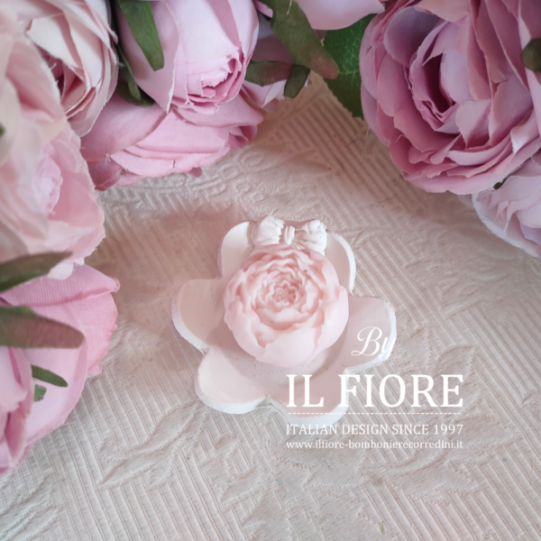 Bomboniera Comunione CANDELA PEONIA con piattino. Confezionata con scatola.