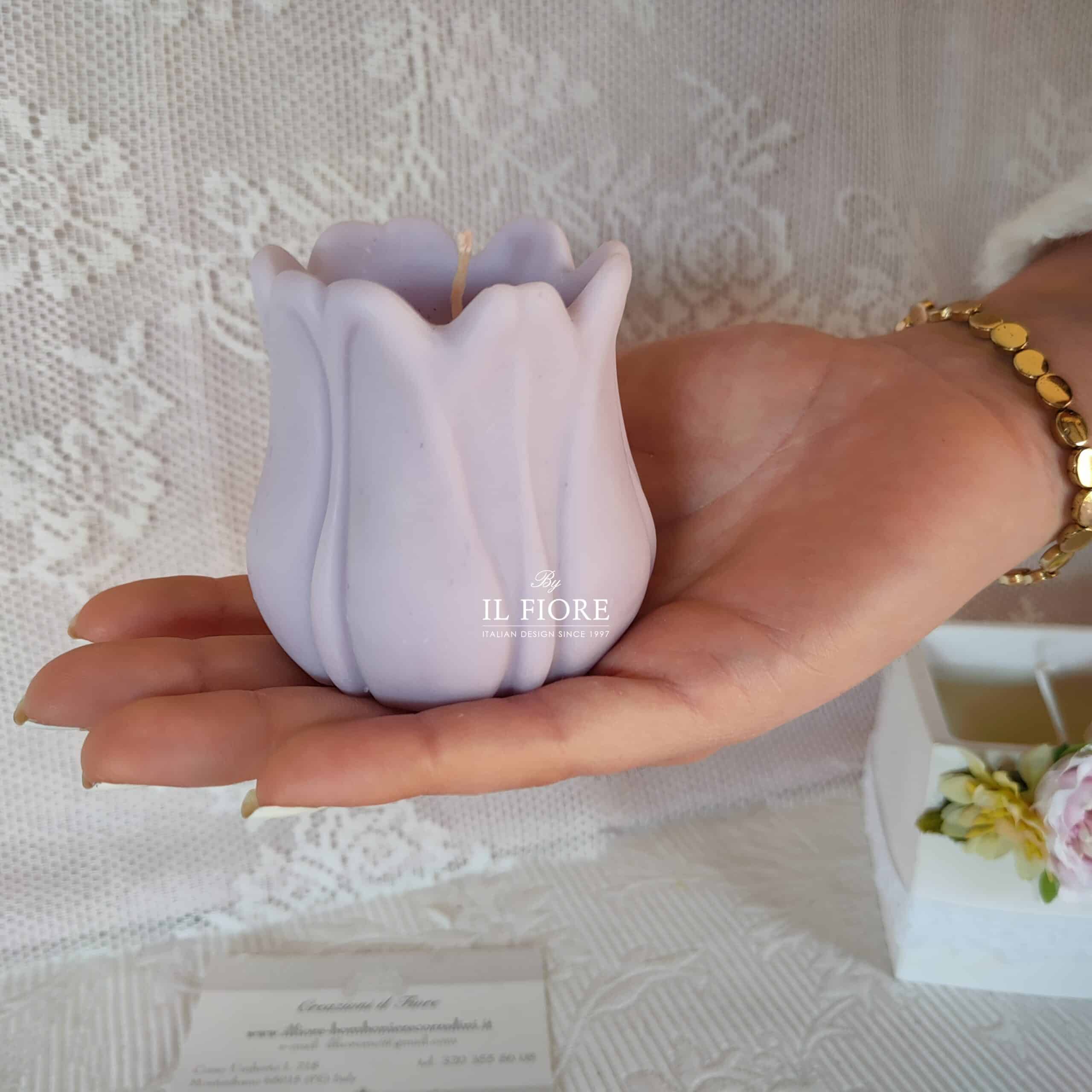 Bomboniera candela tulipano rosa elegante e raffinata per matrimonio, Comunioni, Cresime e anniversario matrimonio.