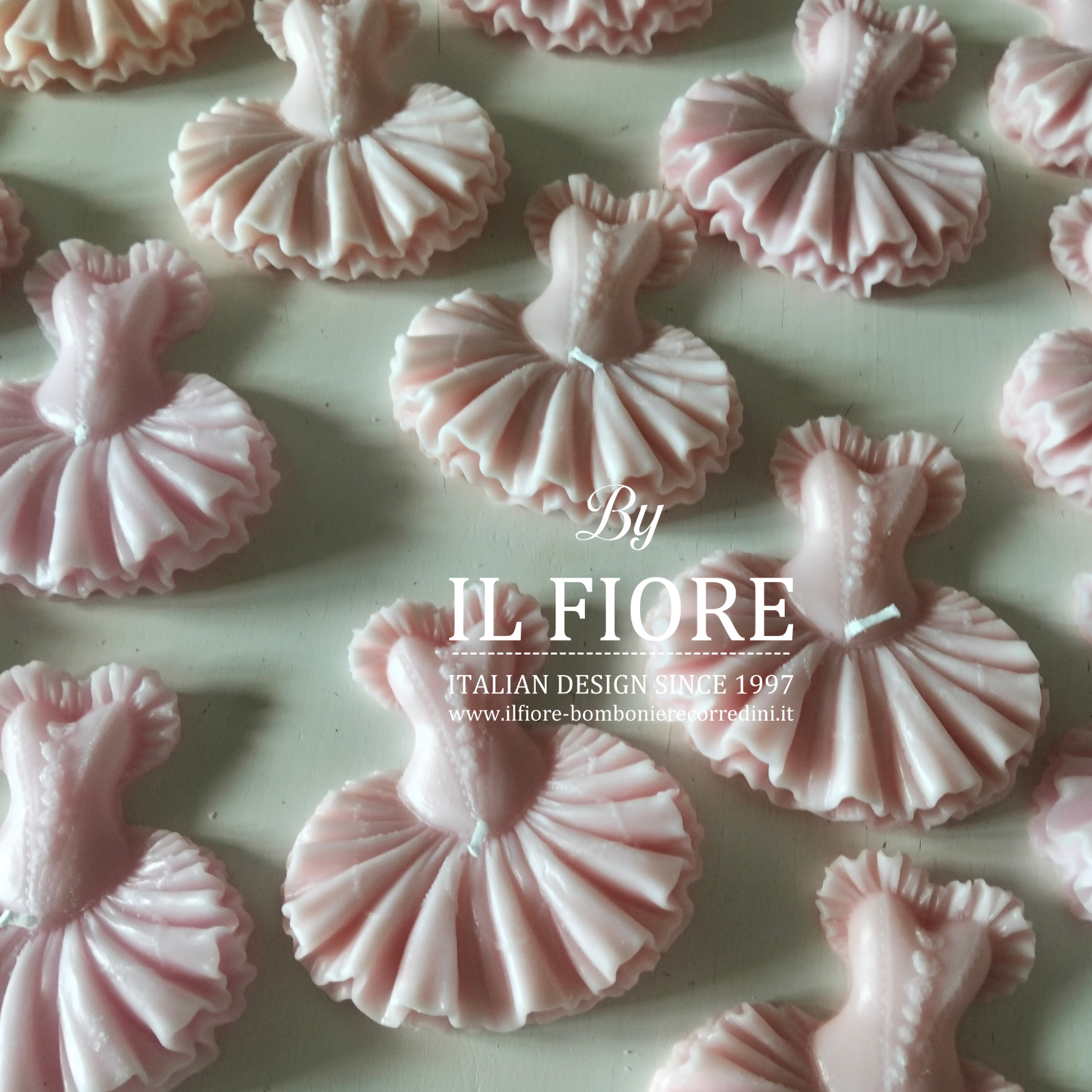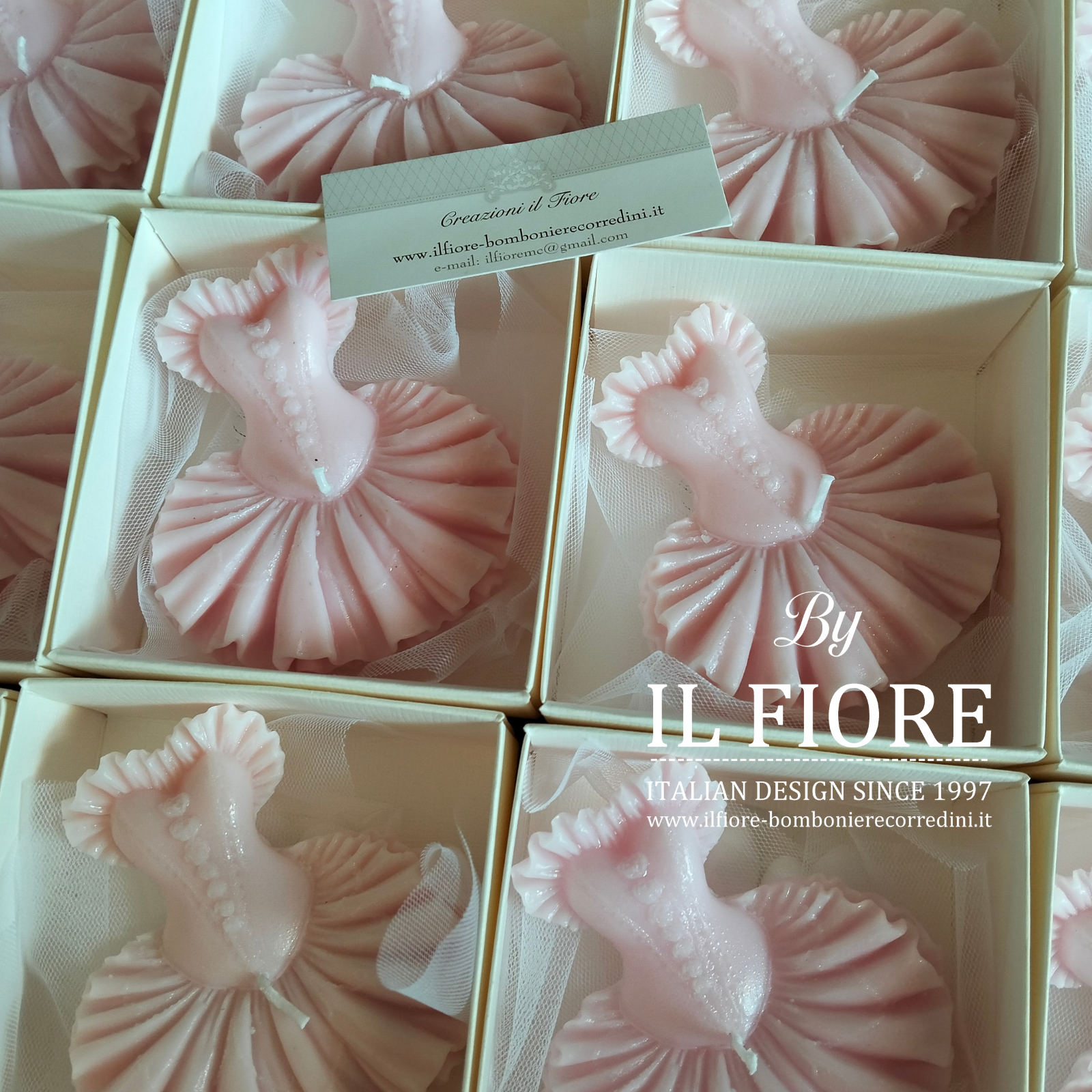 Bomboniera Comunione e Cresima  Danza Classica. Candela Tutù danza classica, con scatola, ciuffetto e nastro di raso rosa cipria.