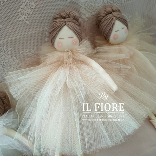 Bomboniera Cresima e Comunione, bambola in stoffa con vestito in tulle beige, cm 32.