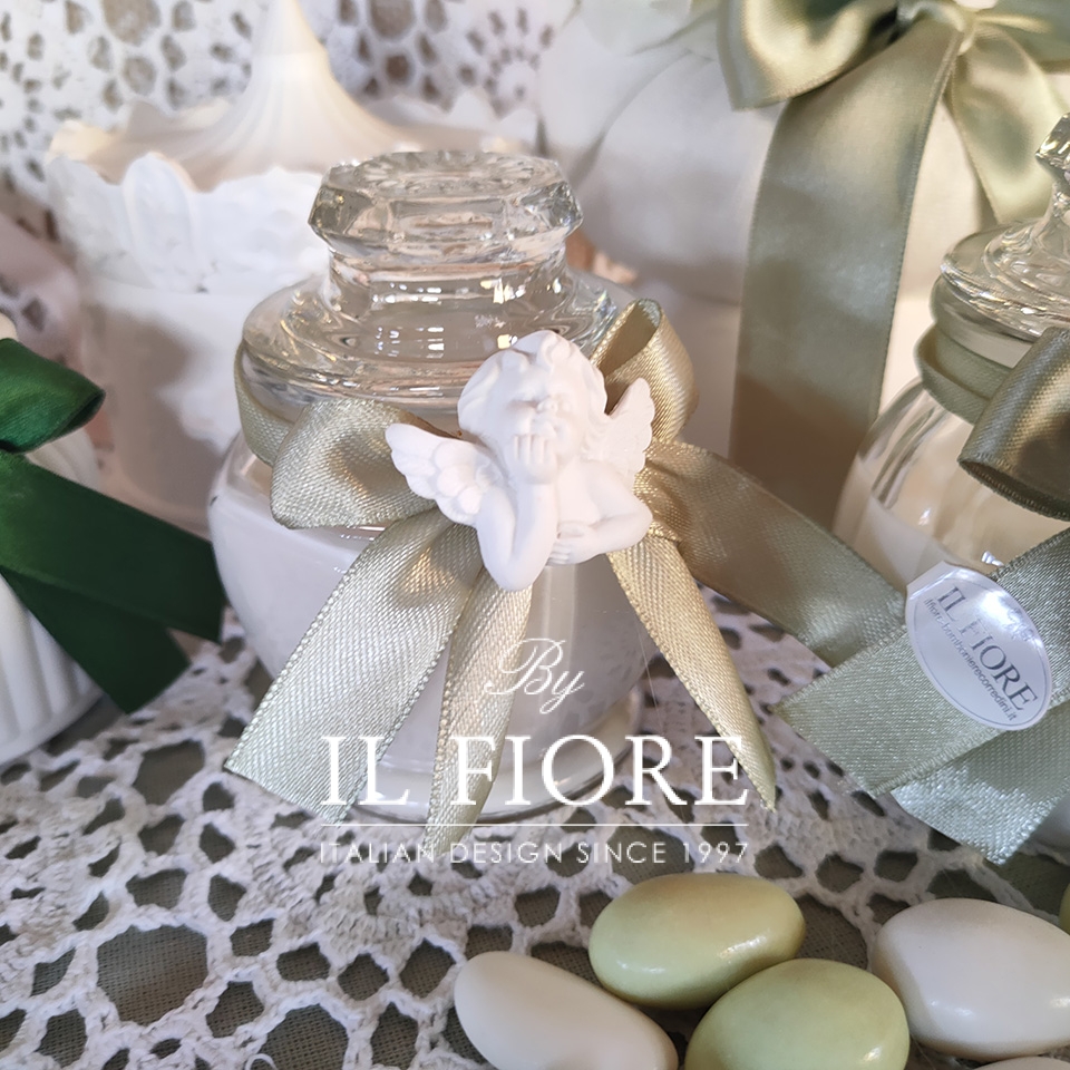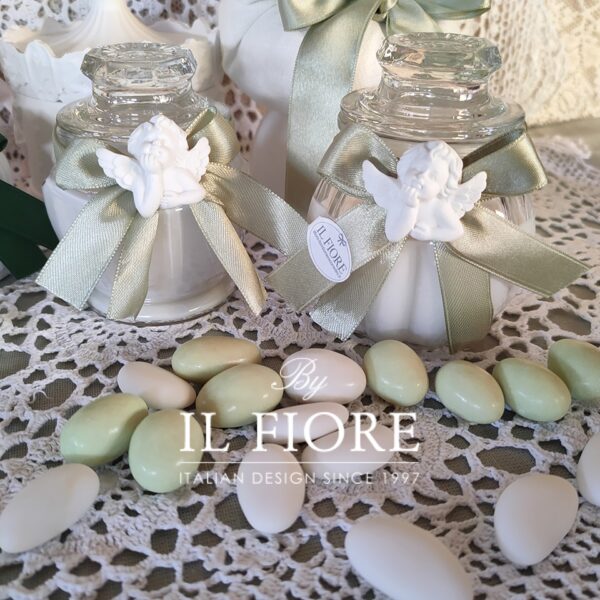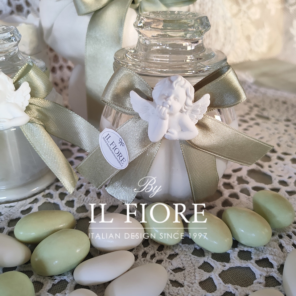 Bomboniere Comunione barattolo portagioie con candela e angelo
