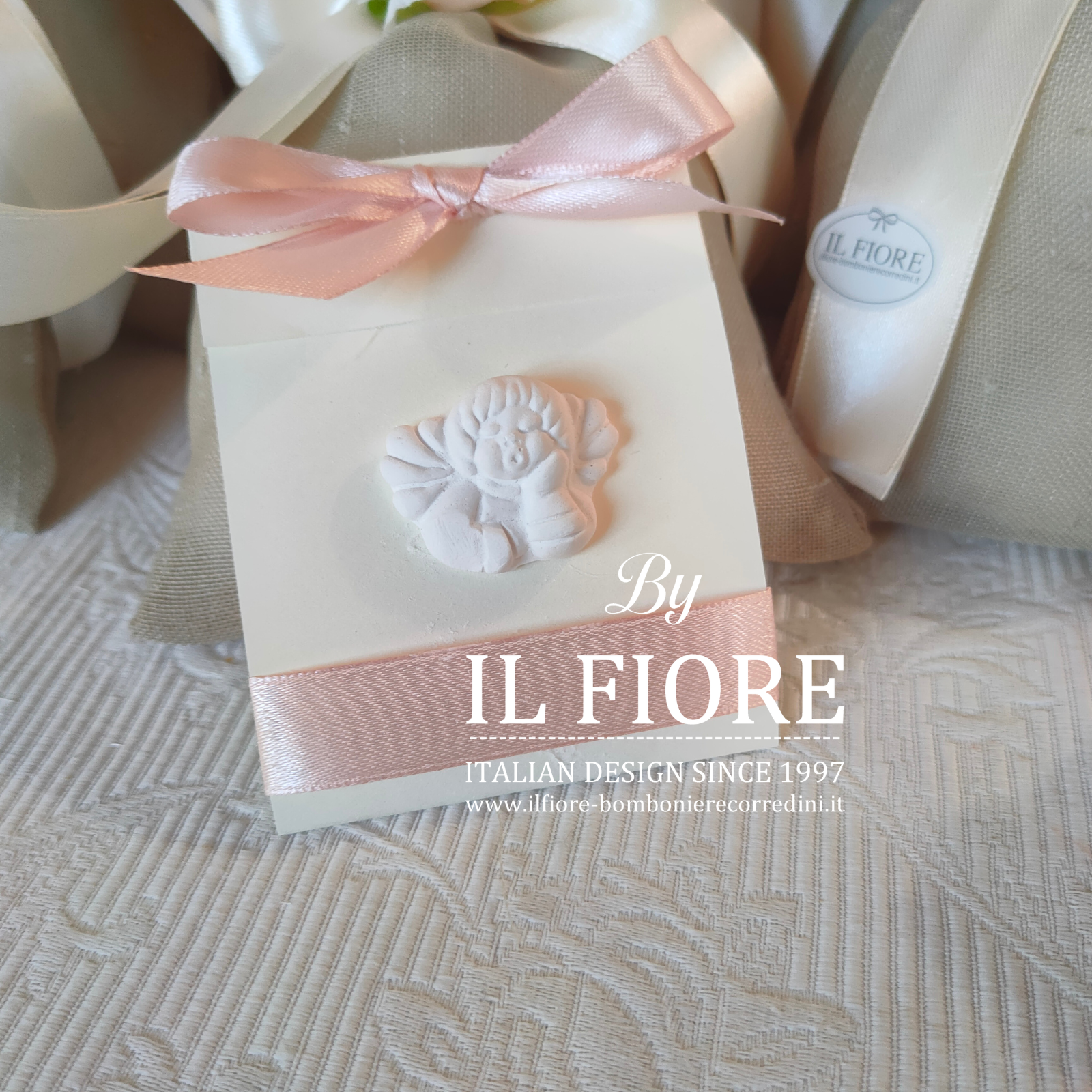 N.B. Le bomboniere saranno decorate con 2 modelli di angeli. Il colore del nastro si può cambiare.