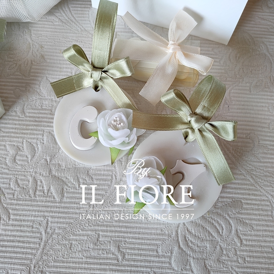 N.B. Il colore del nastro si può cambiare. I fiori e la forma delle candele non si possono scegliere.