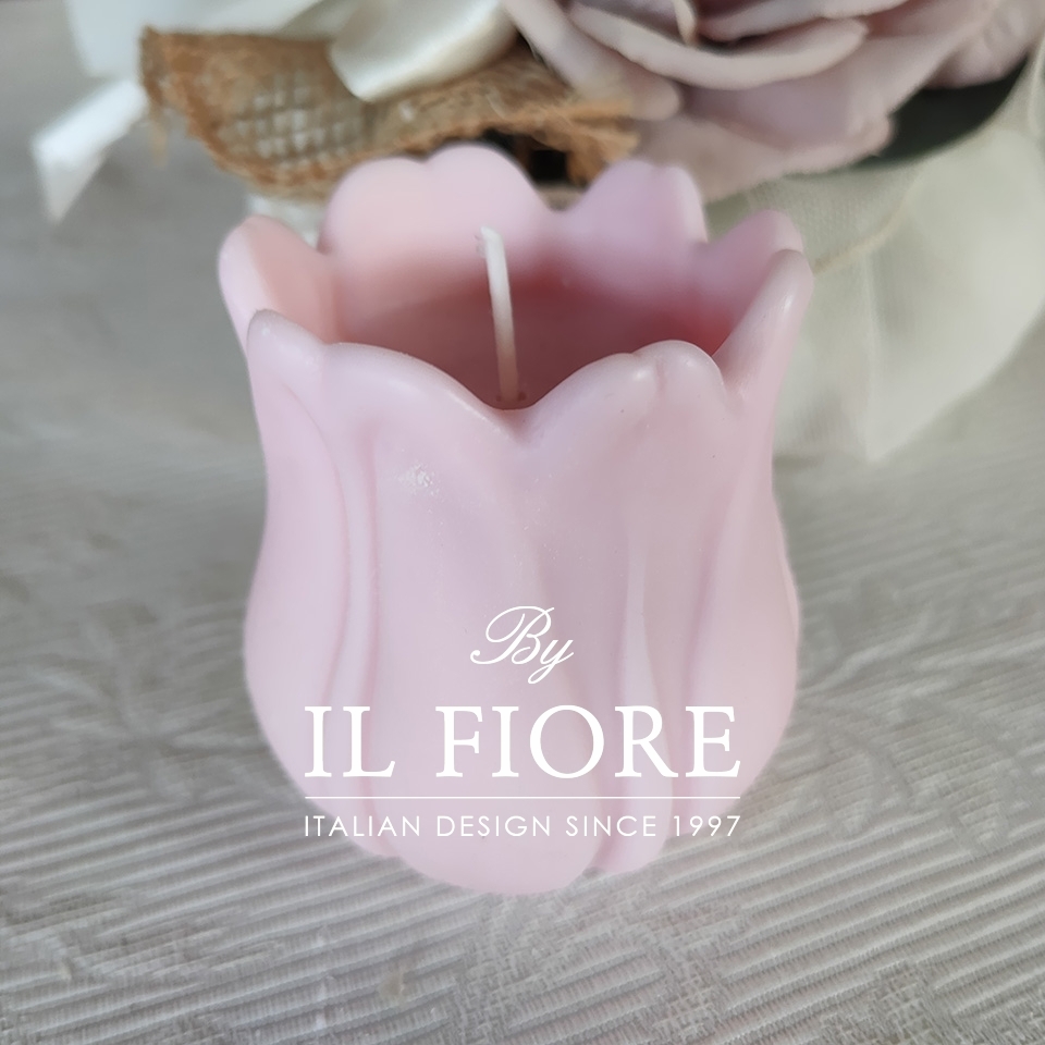 Bomboniera candela tulipano rosa elegante e raffinata per Comunioni e Cresime.