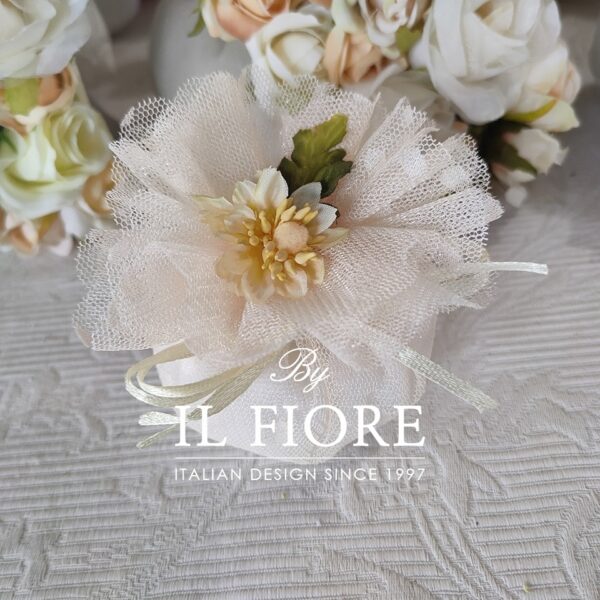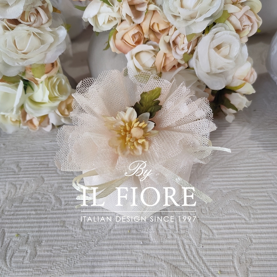 Bomboniera ciuffetto portaconfetti con fiore, consigliata come bomboniera Comunione e Cresima.