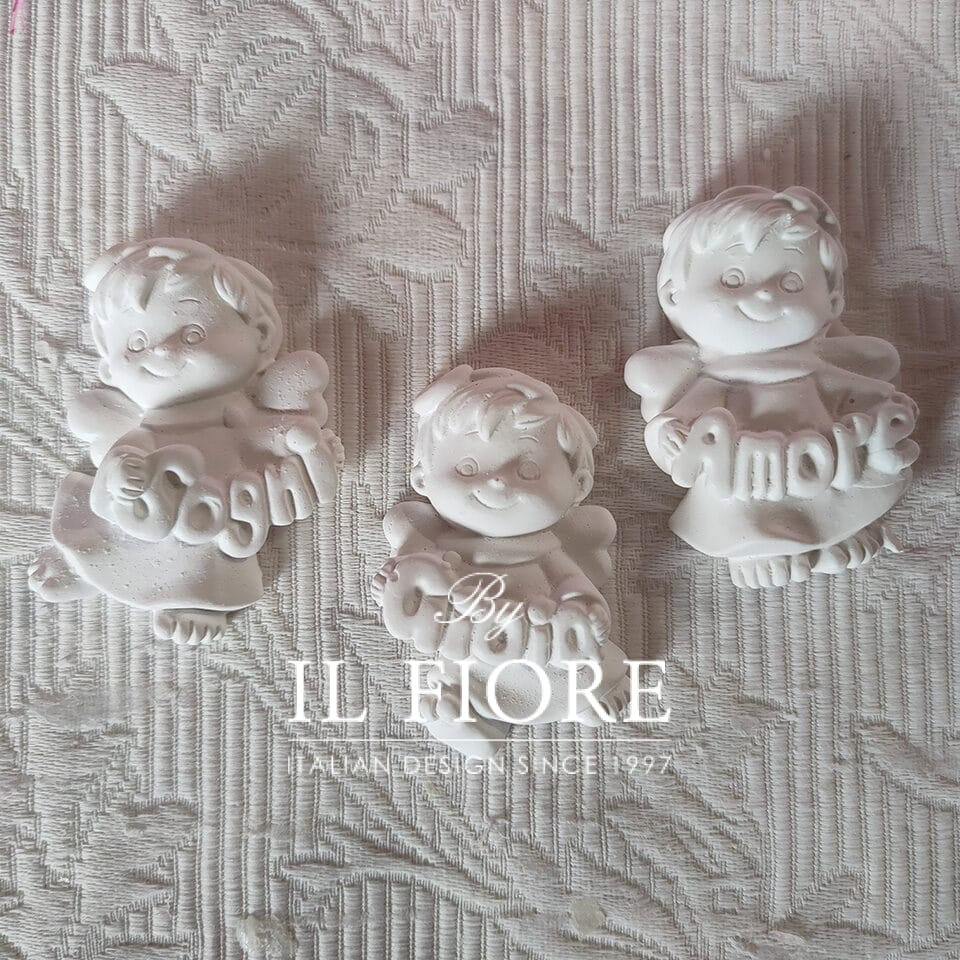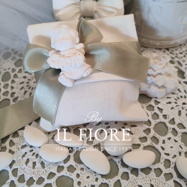 Bomboniera Comunione e Cresima, busta portaconfetti con angioletto in gesso profumato amore, sogni e gioia.