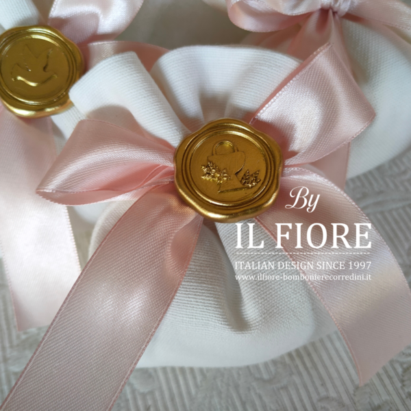 Bomboniera Comunione e Cresima SACCHETTO CON CALAMITA DORATA.