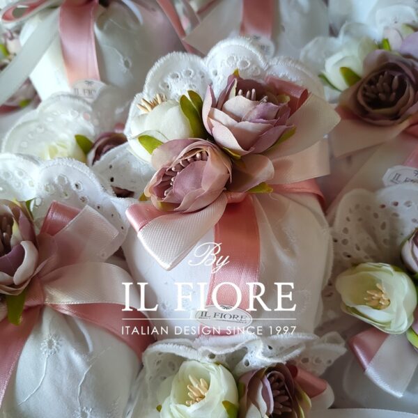 Bomboniere Comunione e Cresima Sacchetto Sangallo con fiore