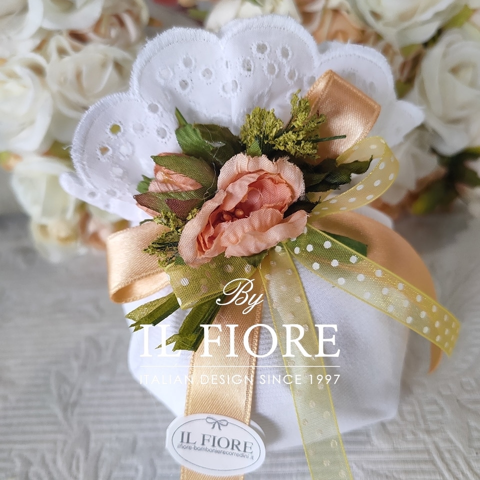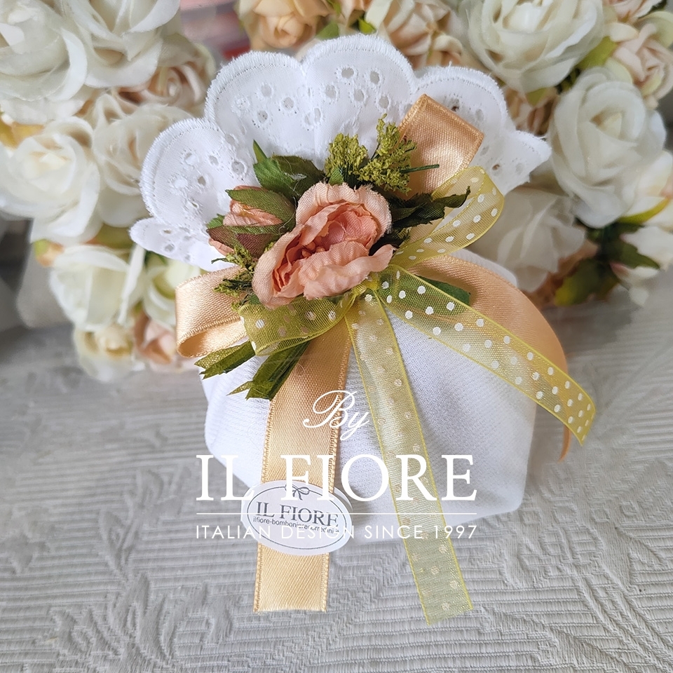 Bomboniere Comunione e Cresima Sacchetto Sangallo con fiore