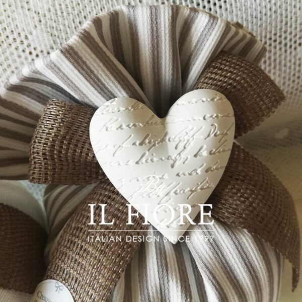 N.B. le bomboniere saranno confezionate con due tessuti, a righe in piquet e bianco in cotone.