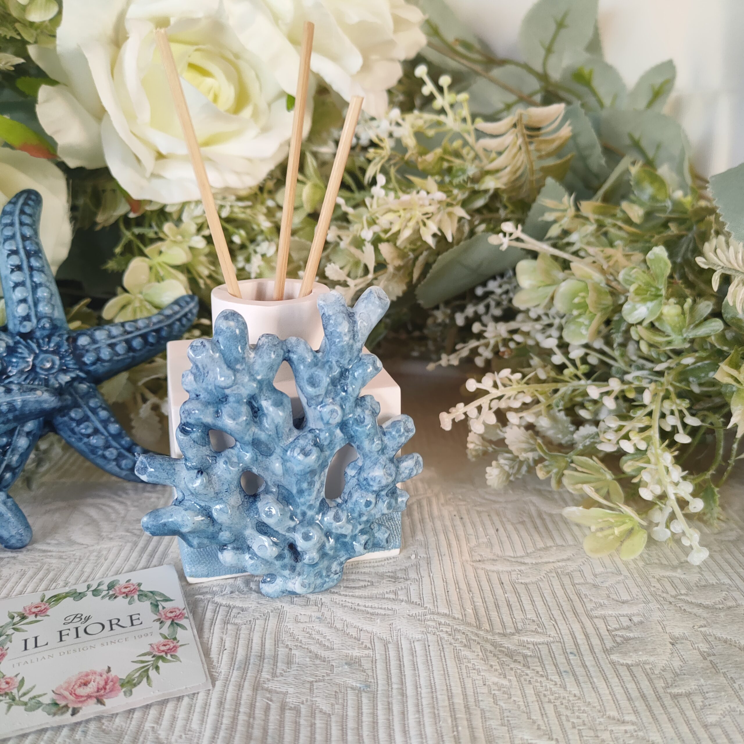 Bomboniera Comunione e Cresima. La bomboniera profumatore in gesso profumatissimo è decorata con corallo marino.