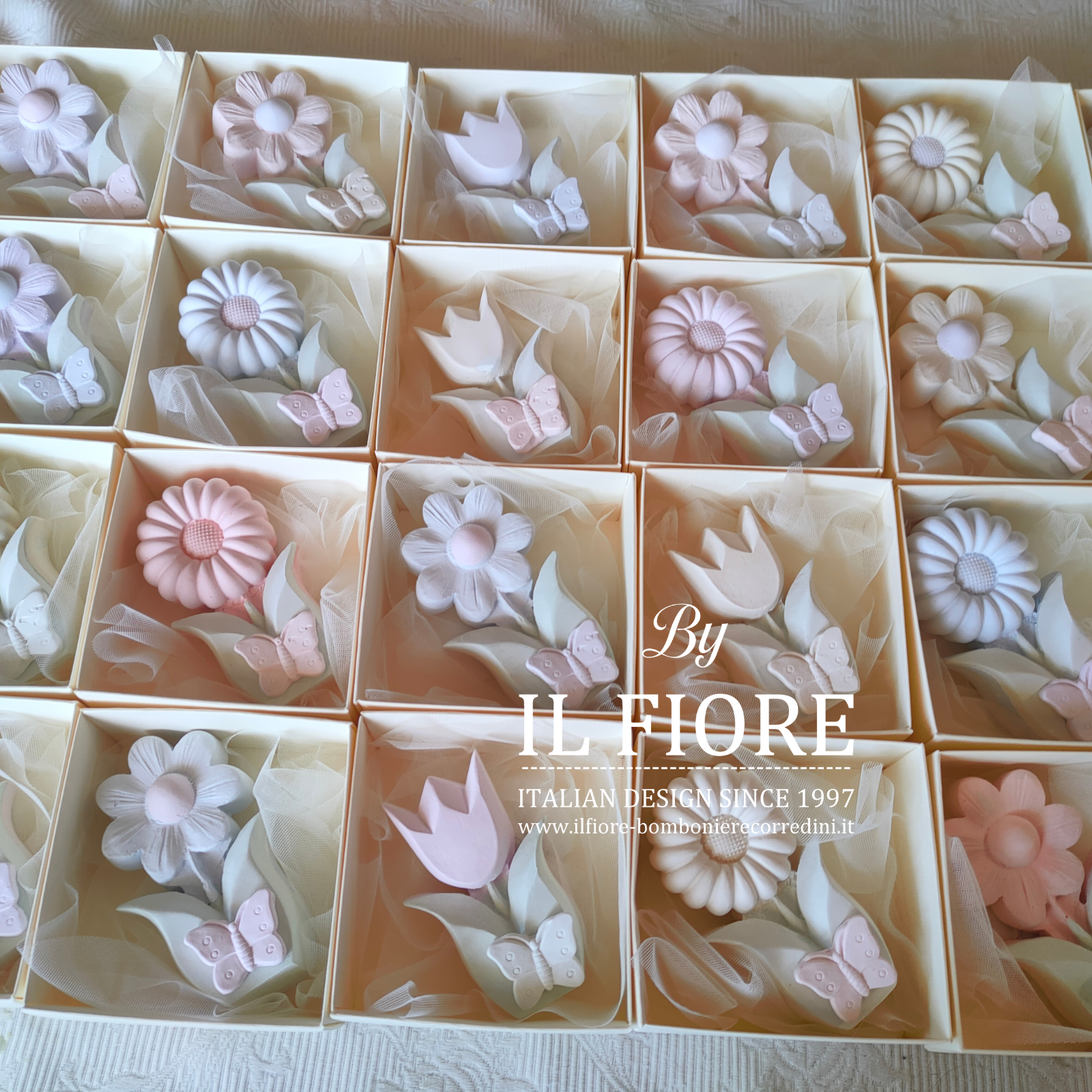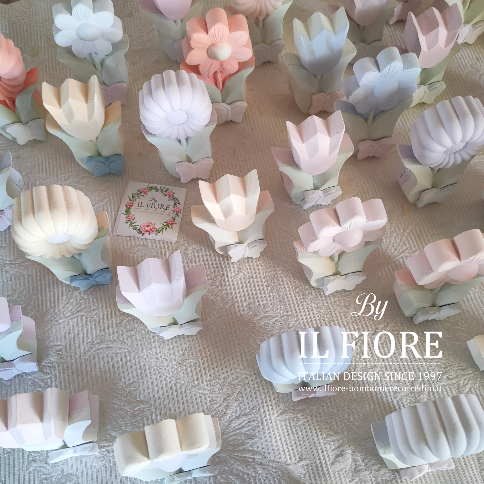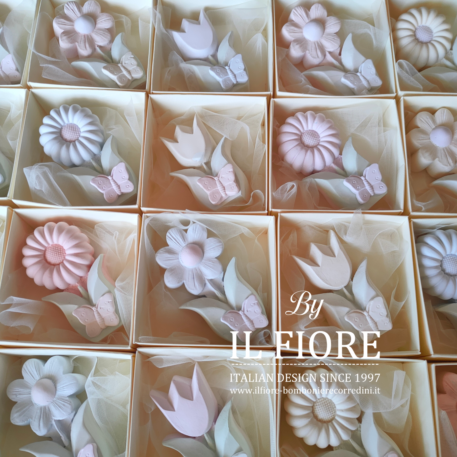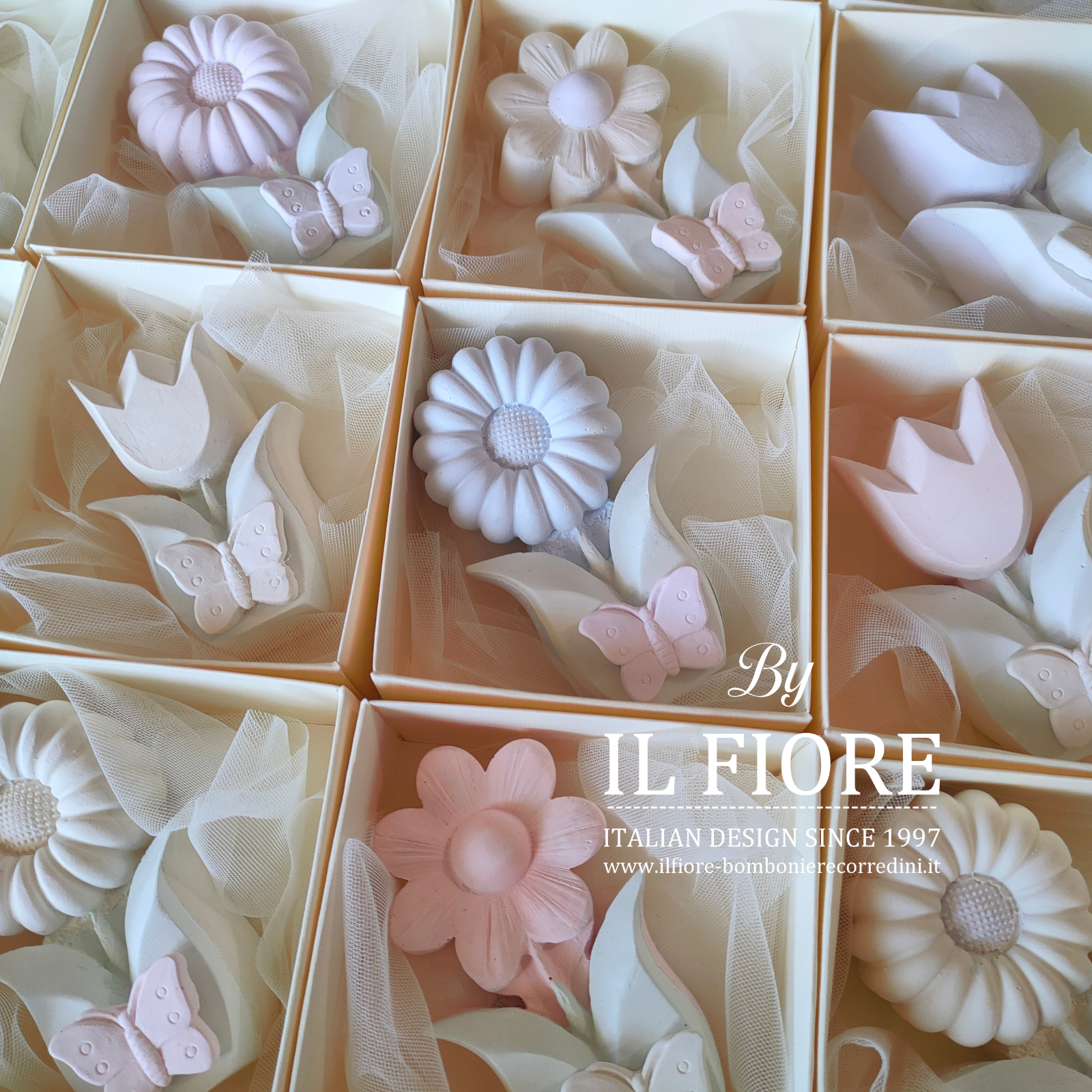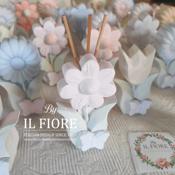 Bomboniere Comunione profumatore fiore colorato in gesso con farfalle